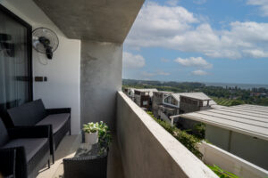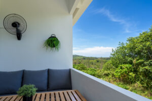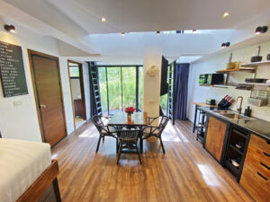 Welcome to Apartment I2 – a stylish 56 sqm split-level retreat that strikes the perfect balance between modern comfort and smart design. With its high ceiling, open-plan layout, and a private balcony overlooking the jungle, I2 is an ideal choice for solo travelers, couples, or small groups of up to three guests.