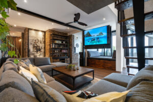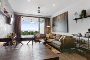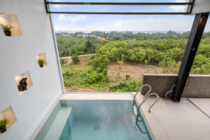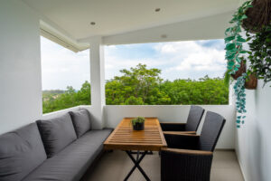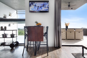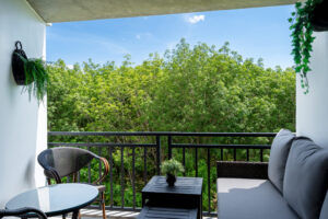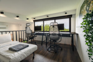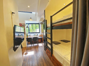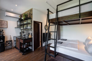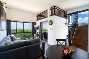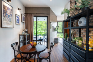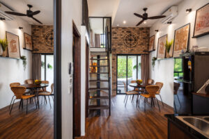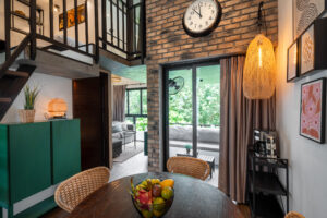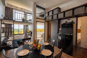 Welcome to Apartment I5 – a stylish 57 sqm split-level home designed with an industrial flair, ideal for a medium-sized family or group. With high ceilings, a spacious loft, and large windows throughout, the apartment is filled with natural light and offers stunning views of the surrounding jungle.