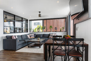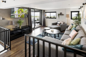 Welcome to Apartment I7 – a thoughtfully designed 56 sqm split-level retreat that combines industrial style with modern comfort. With two bedrooms, a loft room, and high ceilings, this spacious layout is ideal for families or small groups of up to five guests.
