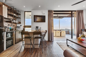 Welcome to H1 an elegantly designed apartments that offers a sophisticated living experience for up to four guests. It features an open-plan layout that seamlessly combines the kitchen, dining area, and living room into one spacious and inviting area.