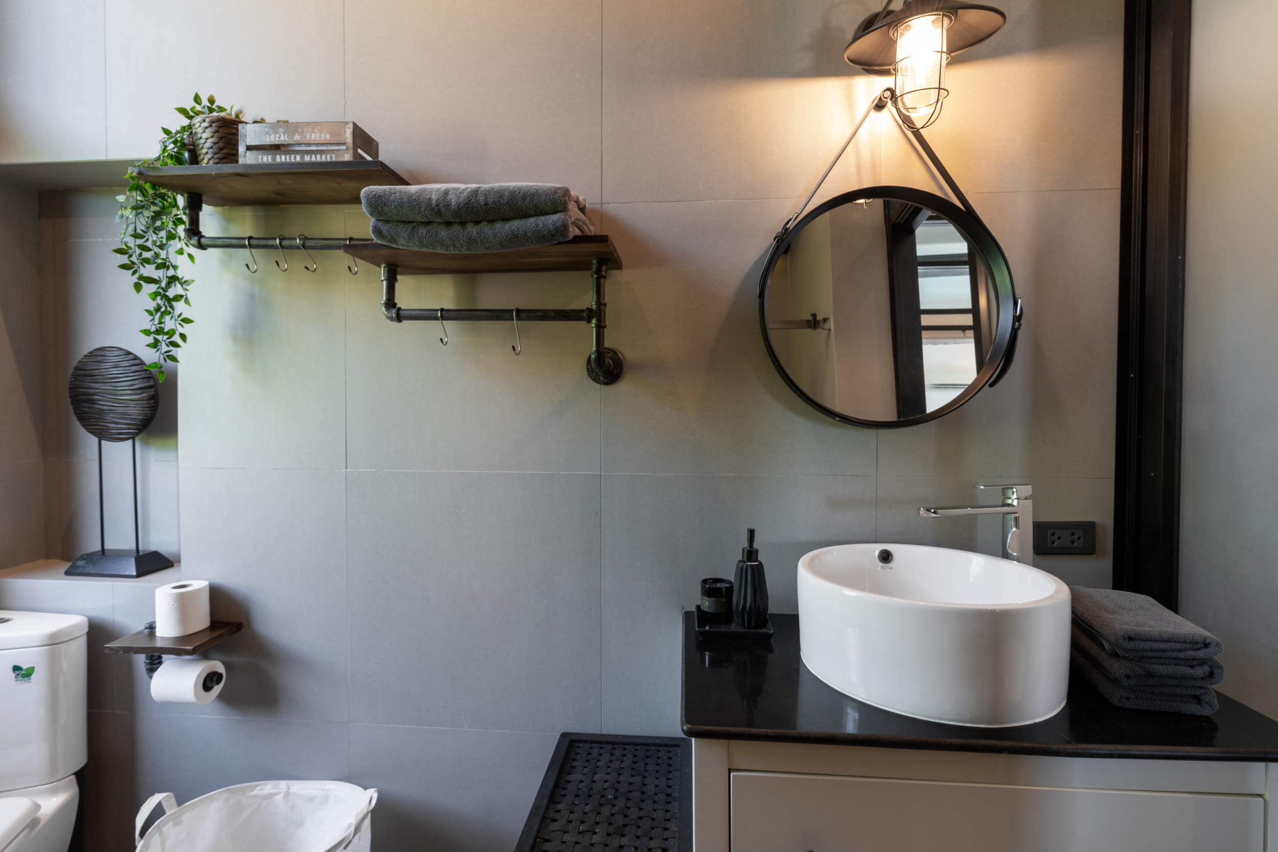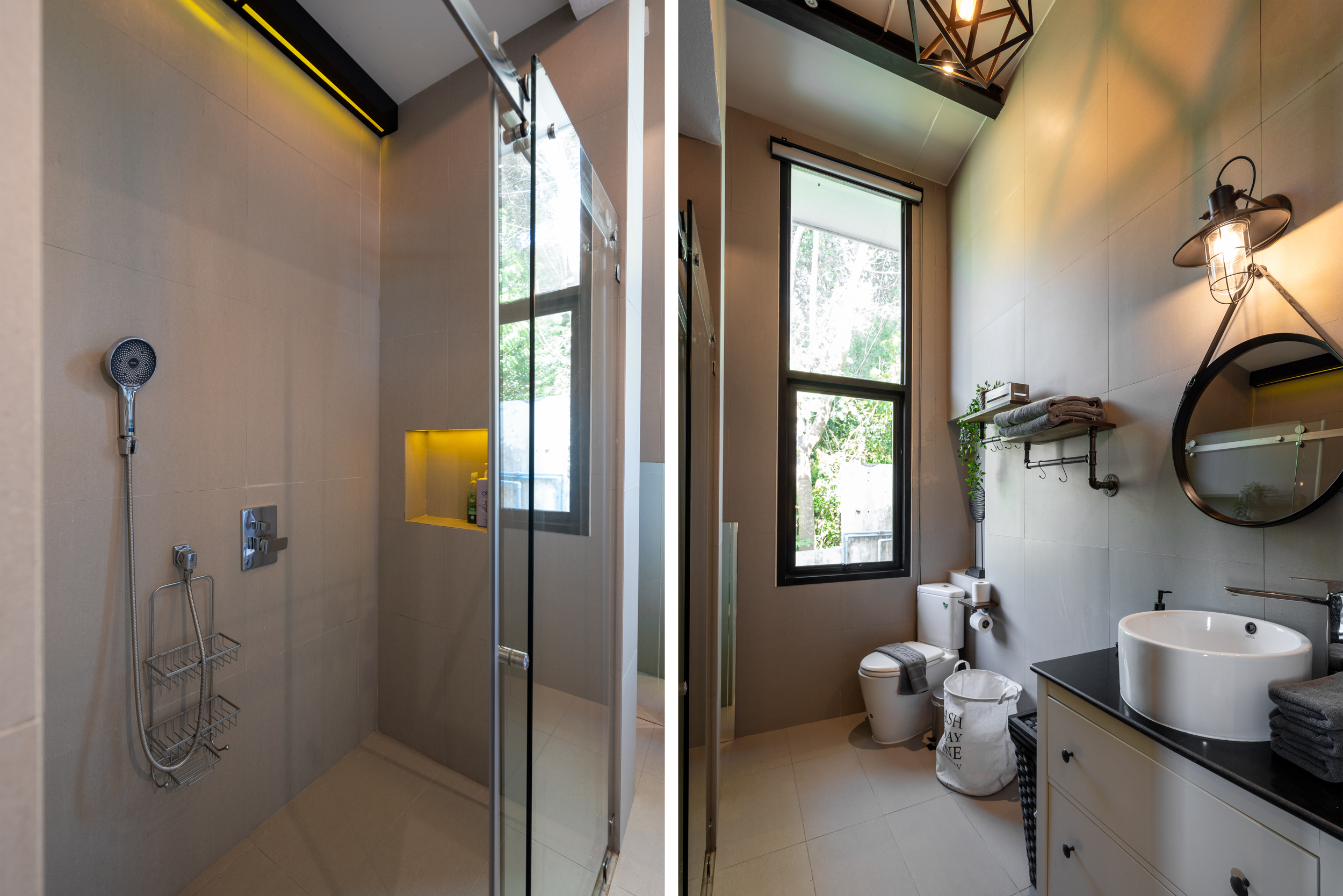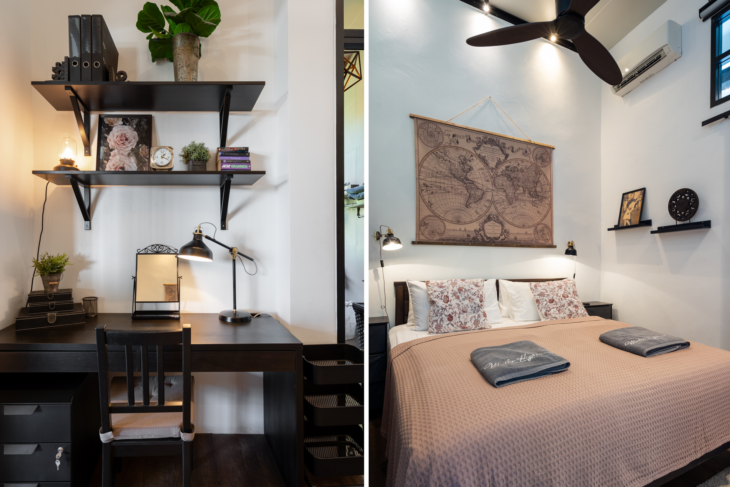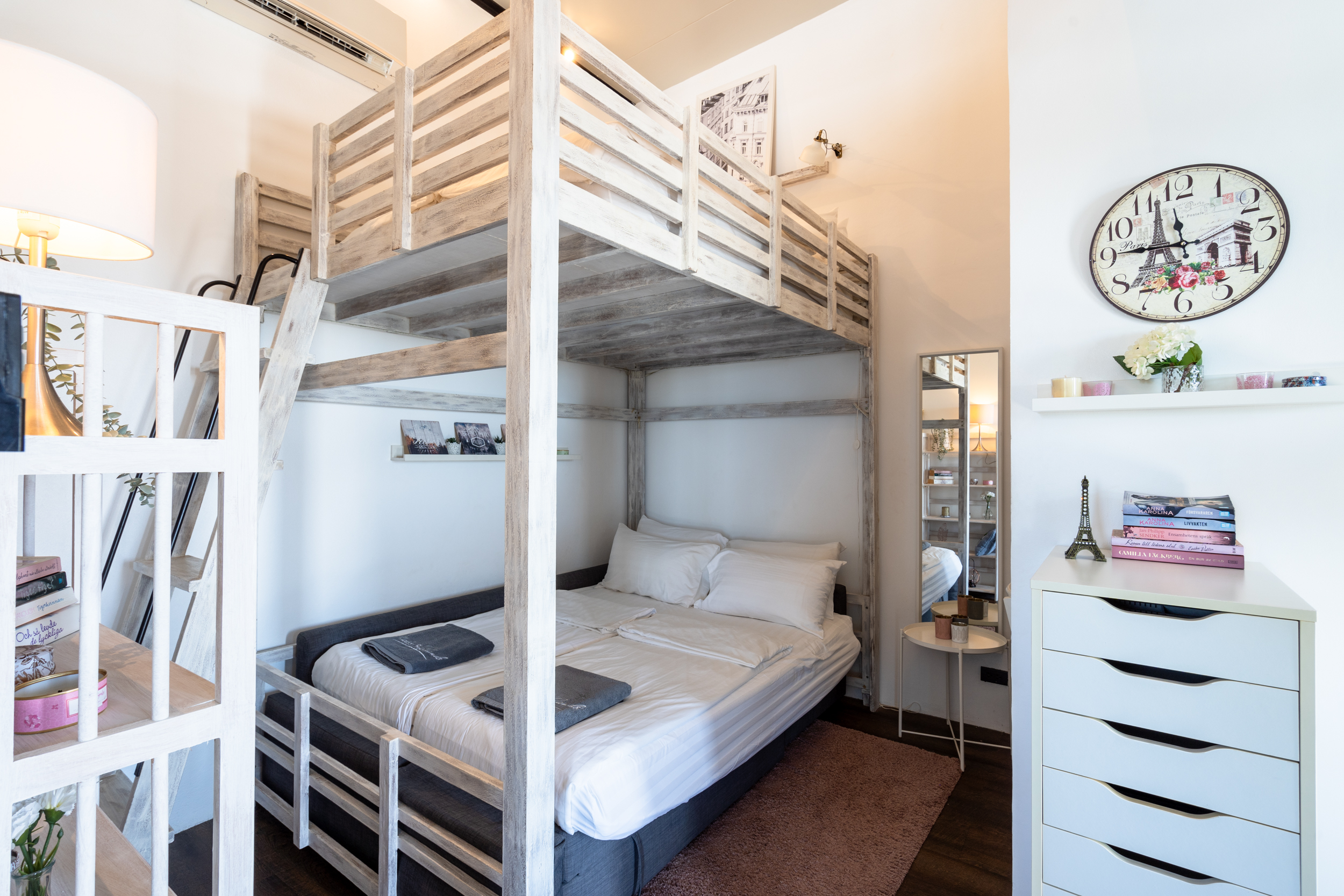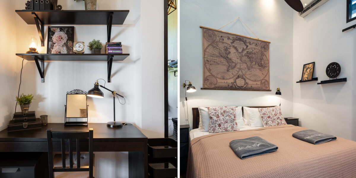The master bedroom includes a king-size bed, air conditioning, wardrobes, a work desk, and a private en-suite bathroom. All beds are fitted with high-quality IKEA mattresses and premium linens to ensure a restful night’s sleep.