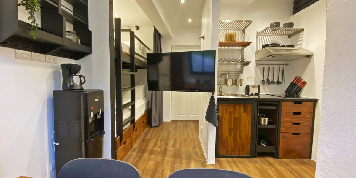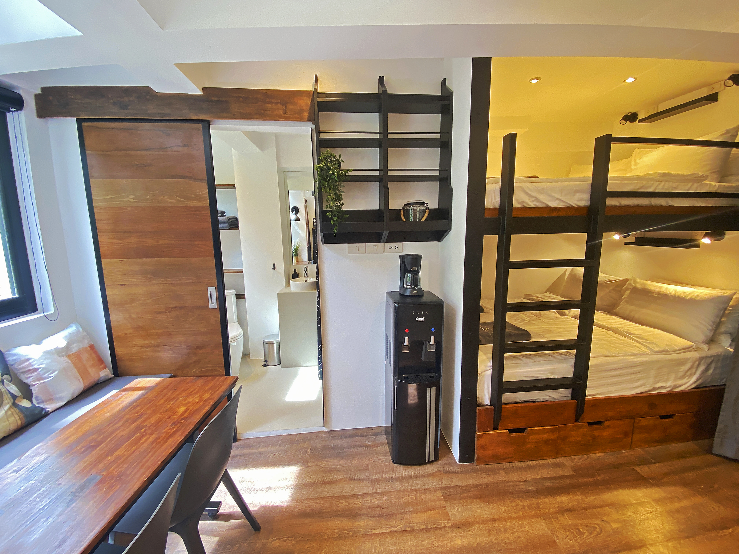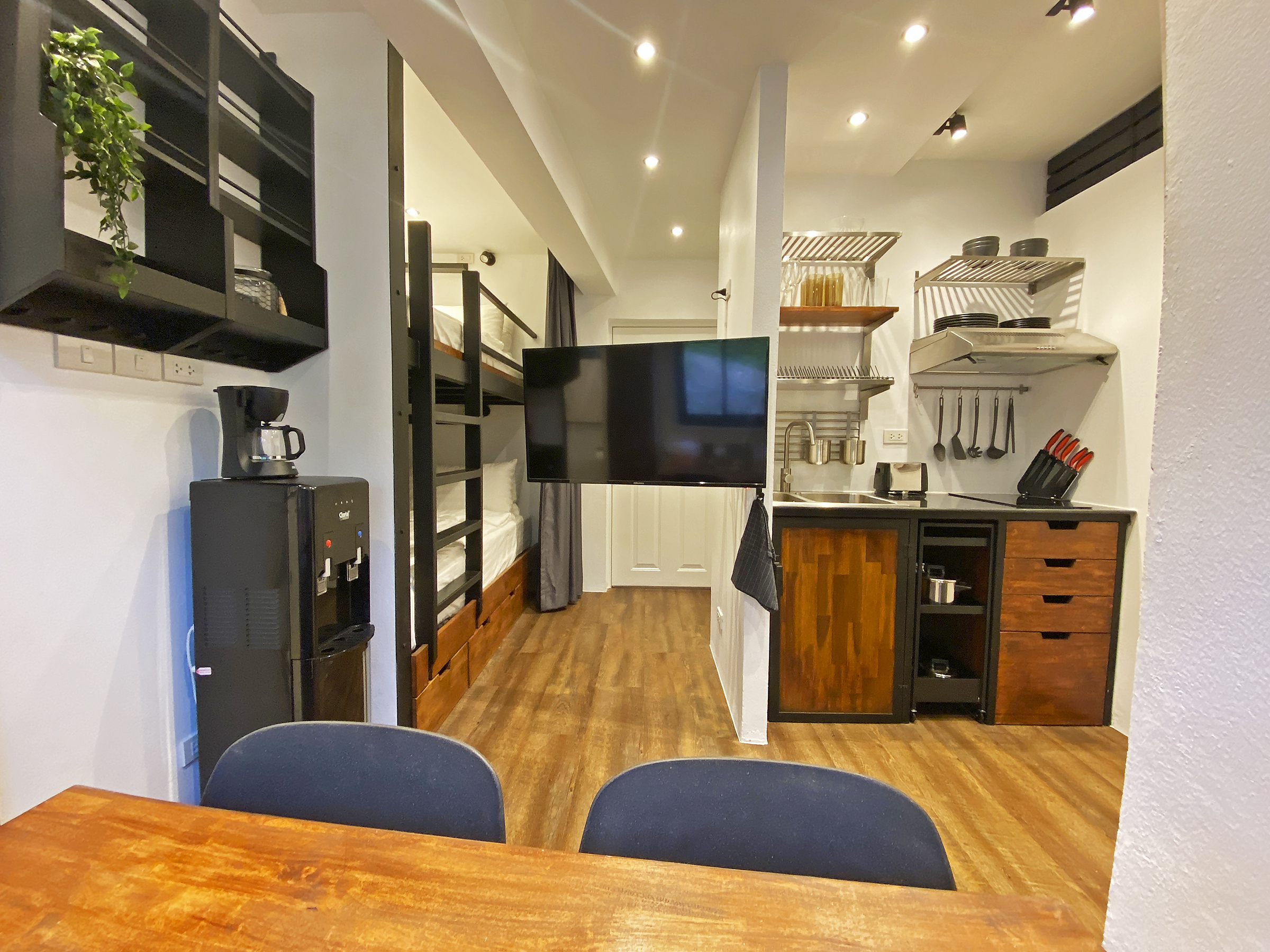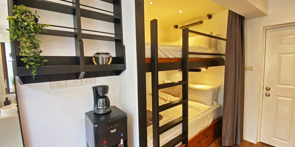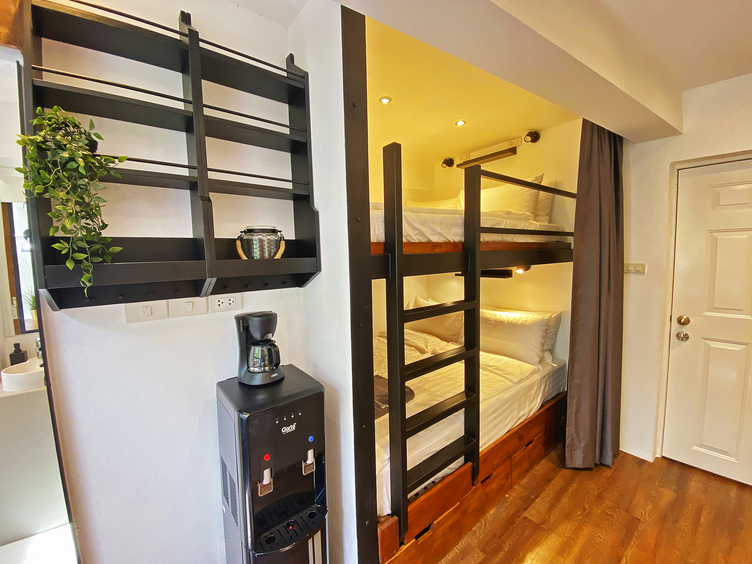 Welcome to A12, the smallest of our compact studios but packed with everything you need for a comfortable stay. Accommodating up to four guests (minimum age 8 years), this 19 sqm studio features a queen-size bunk bed configuration, making it an ideal choice for small groups or families. IKEA mattresses and quality linens ensures a good night’s sleep.