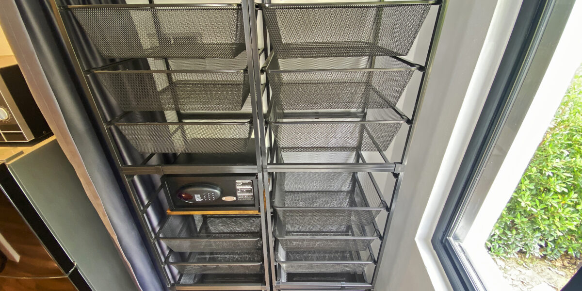 Smart storage solutions are incorporated throughout the space, with storage boxes under the bench and a loft offering the perfect spot to store your luggage or other items you want out of the way.