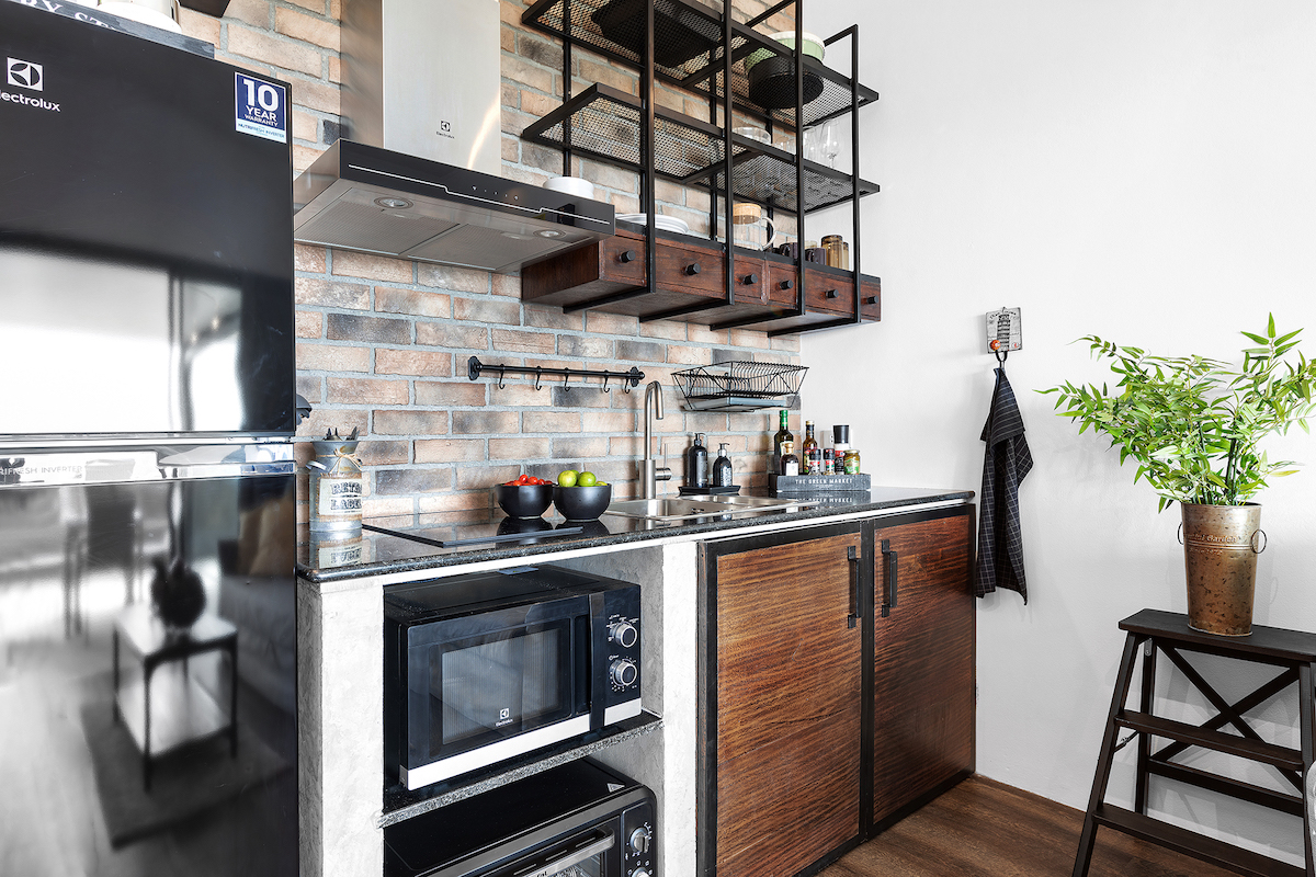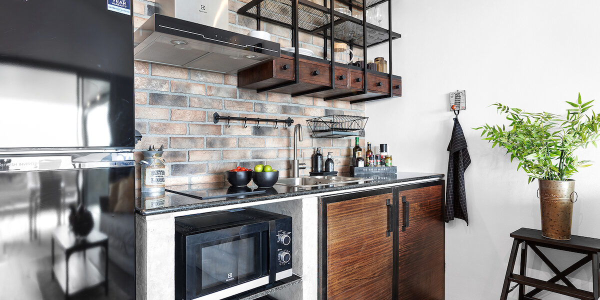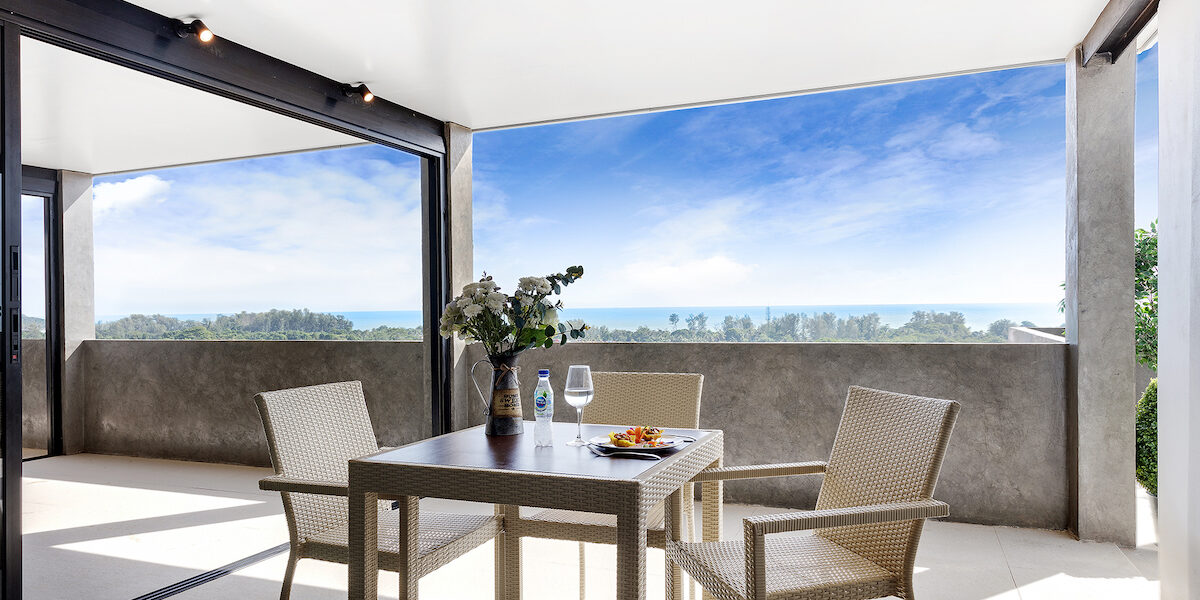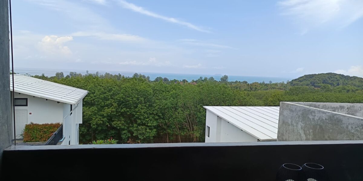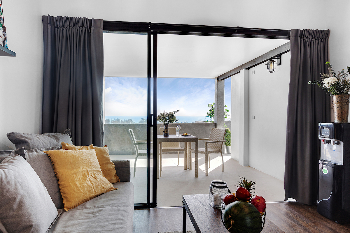 As you enter the kitchen and living area, you’ll be greeted by the stunning views that Malee Highlands is known for. The living space includes a comfortable bed-sofa, a 43-inch TV, and a fully equipped kitchen featuring a two-burner cooktop, microwave, full-size refrigerator, oven, toaster, coffee machine, and all the necessary pots, utensils, and dishes. For added convenience, a washer/dryer is also included.