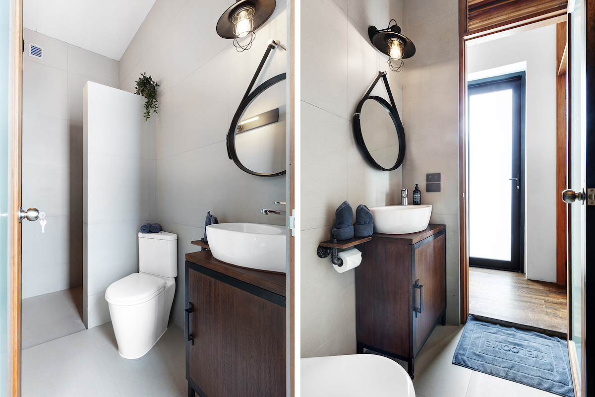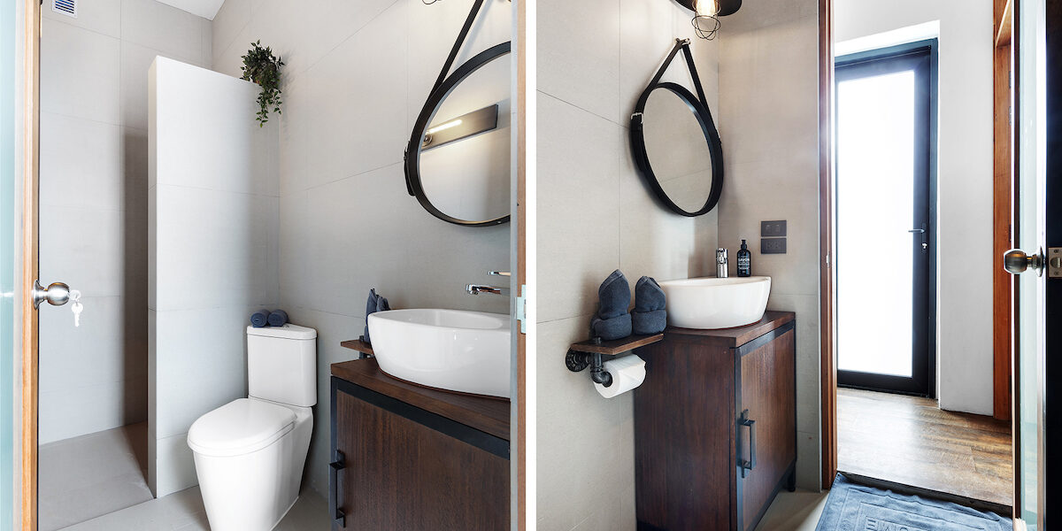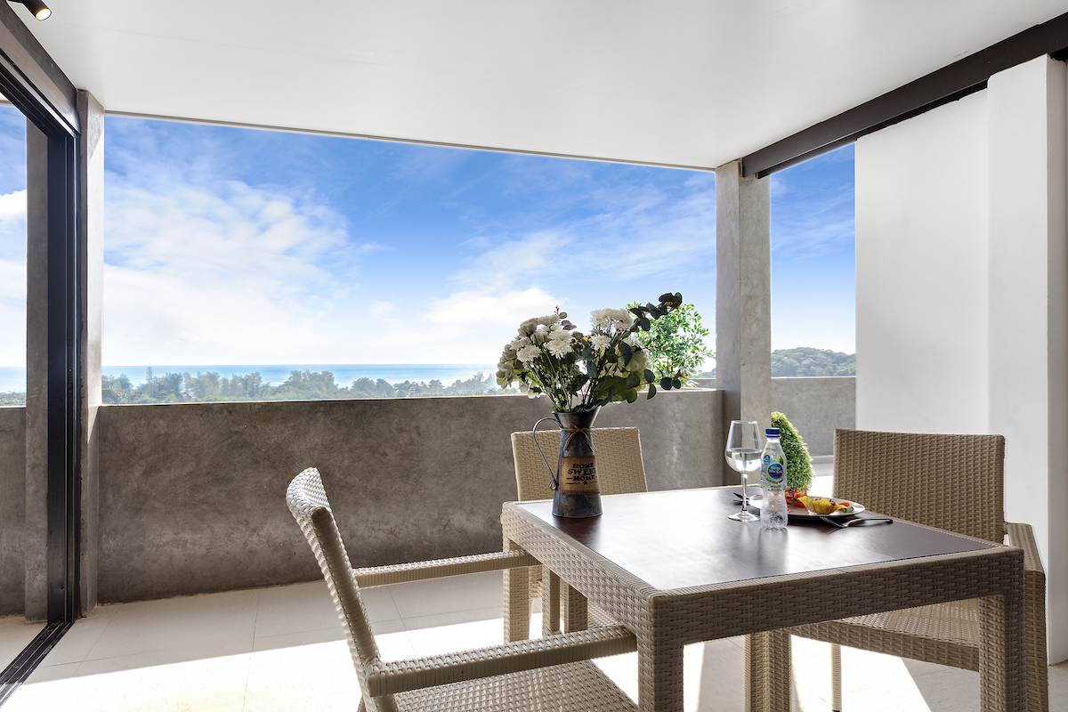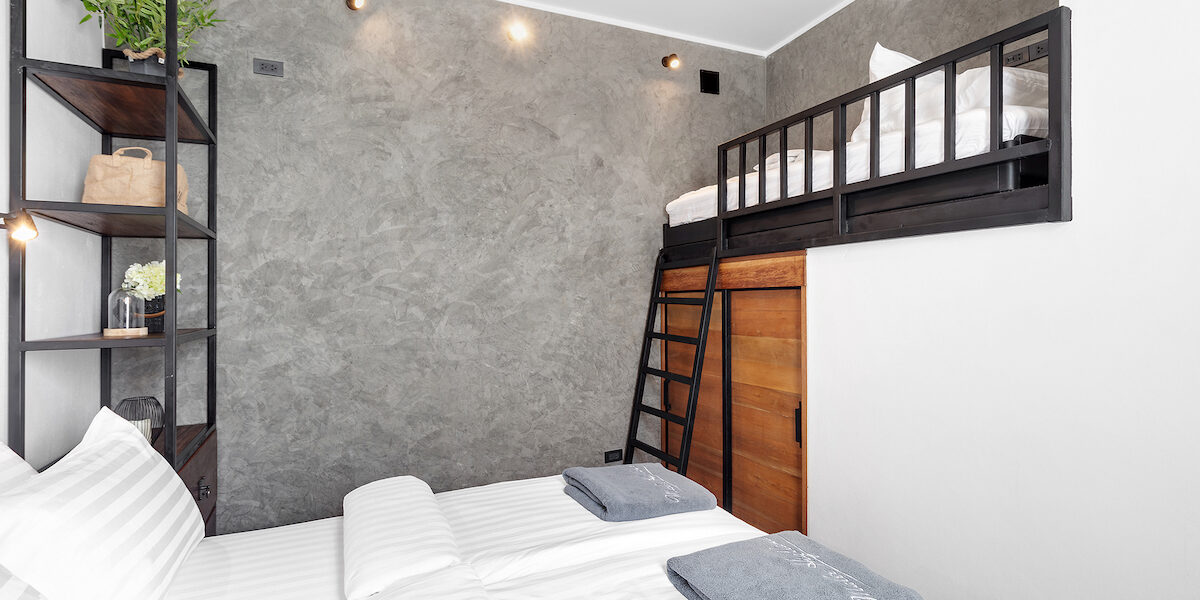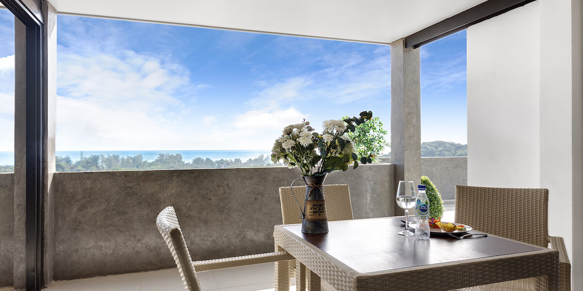 Step out onto the terrace, where you’ll find a dining table for four and direct access to the communal pool. If you are traveling with a larger group, you can rent the adjacent apartments and open the terrace doors for easy access between the units.