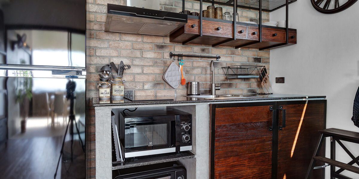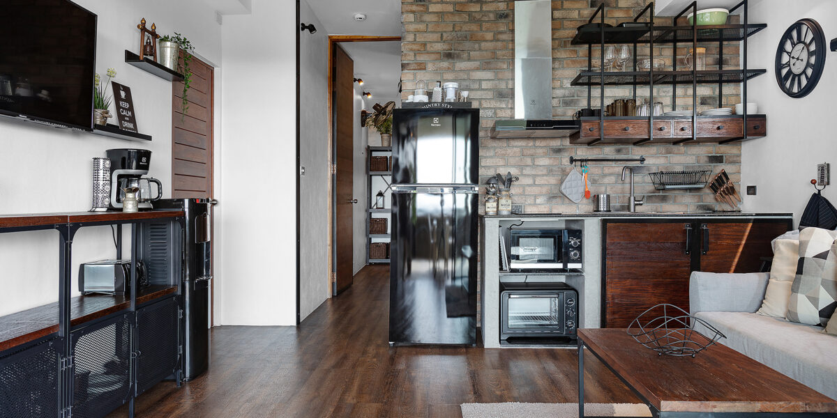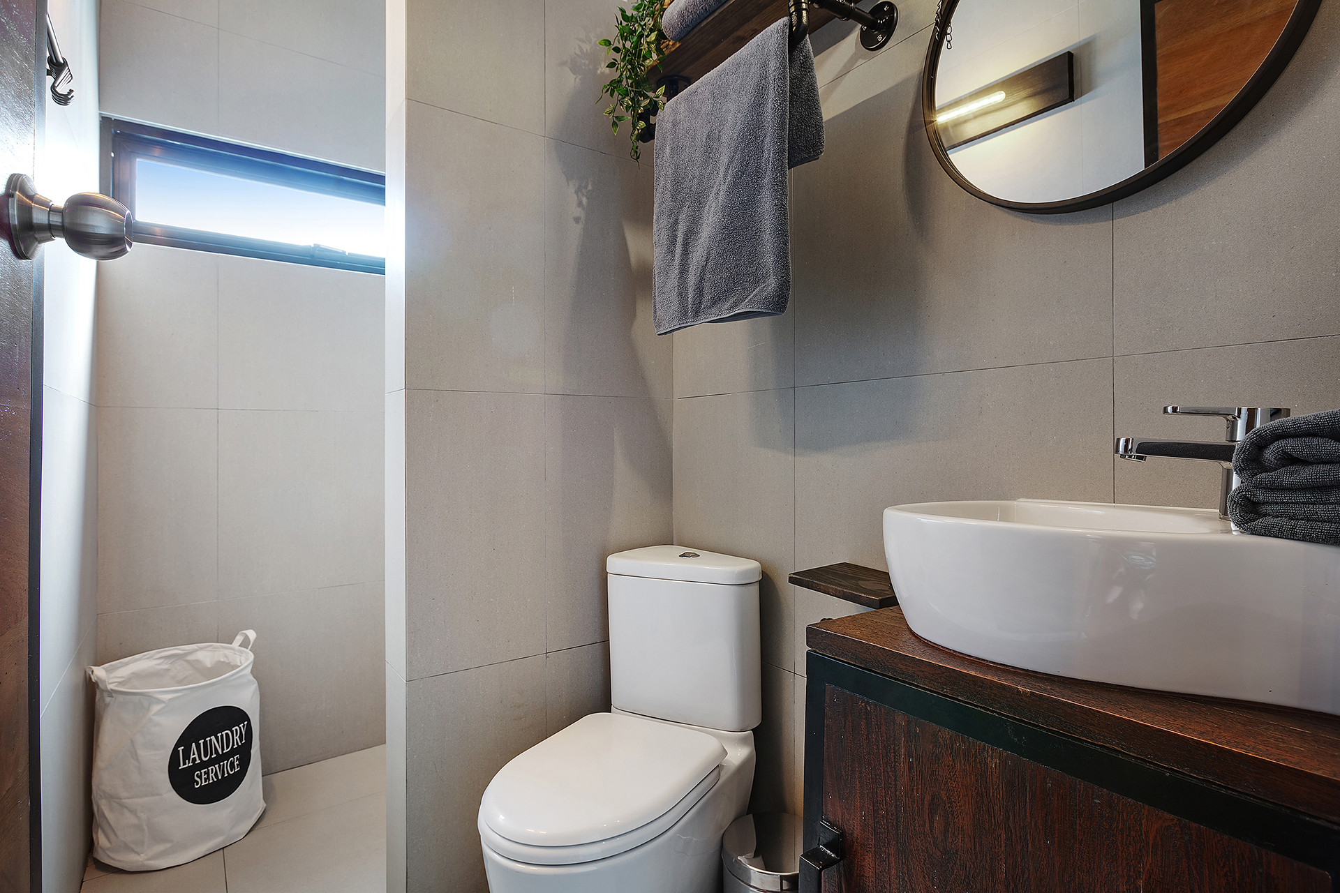As you enter the kitchen and living area, you’ll be greeted by the stunning views that Malee Highlands is known for. The living space includes a comfortable bed-sofa, a 43-inch TV, a bar table and a fully equipped kitchen featuring a two-burner cooktop, microwave, full-size refrigerator, oven, toaster, coffee machine, and all the necessary pots, utensils, and dishes. For added convenience, a washer/dryer is also included.