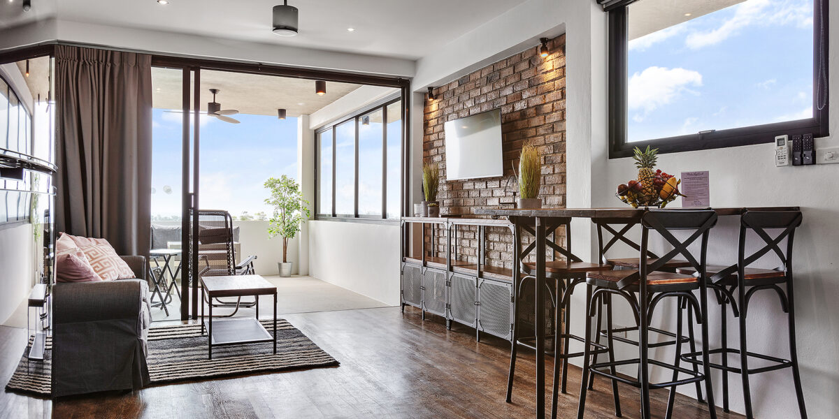 Welcome to Apartment A6, an elegant one-bedroom and loft unit designed for up to four guests.