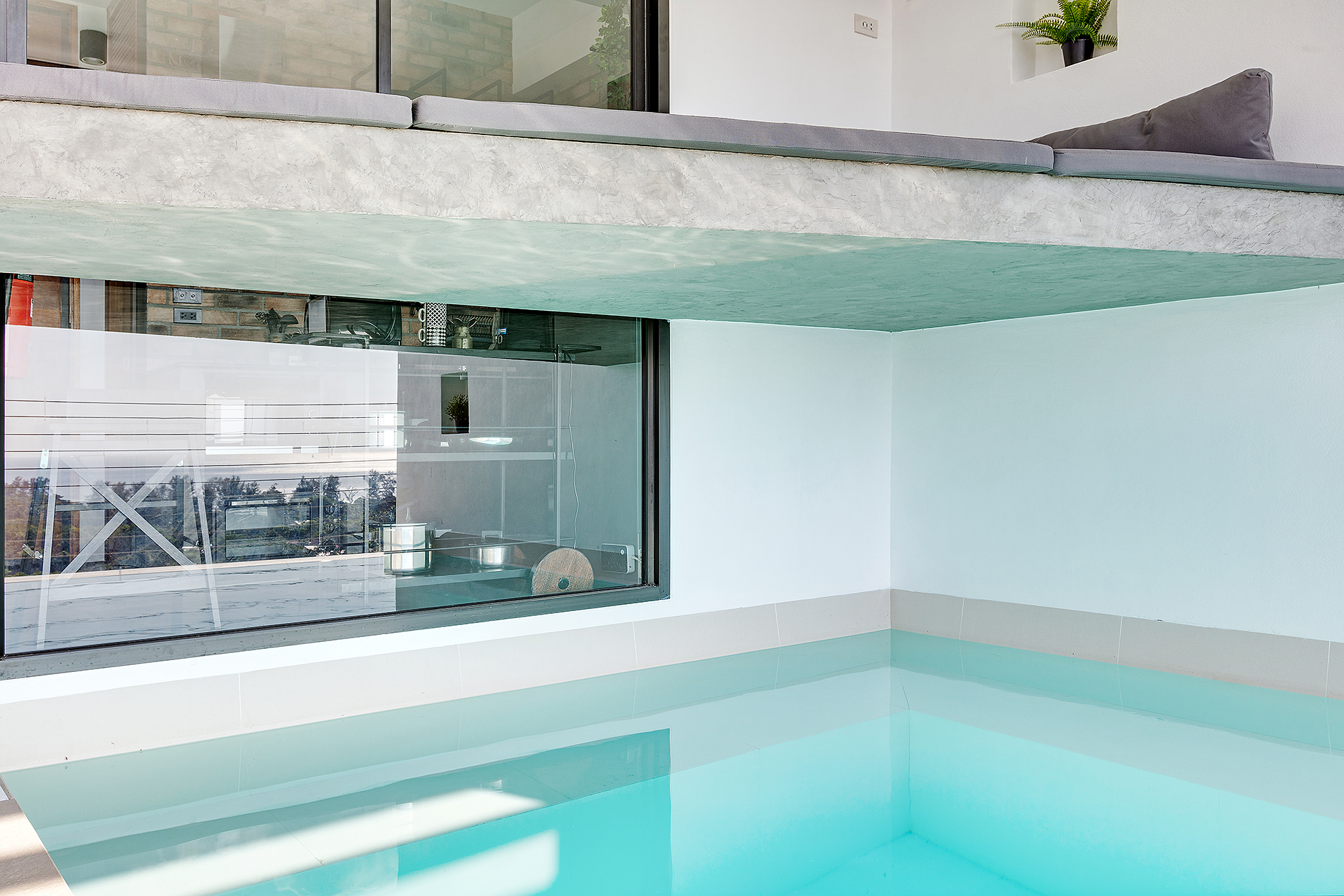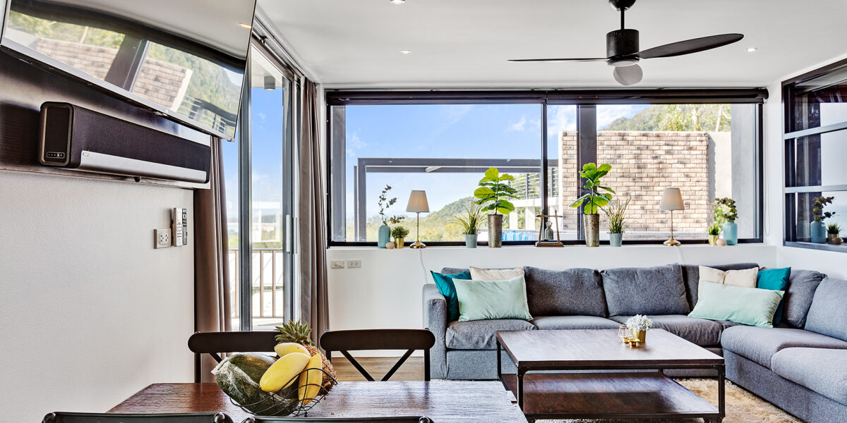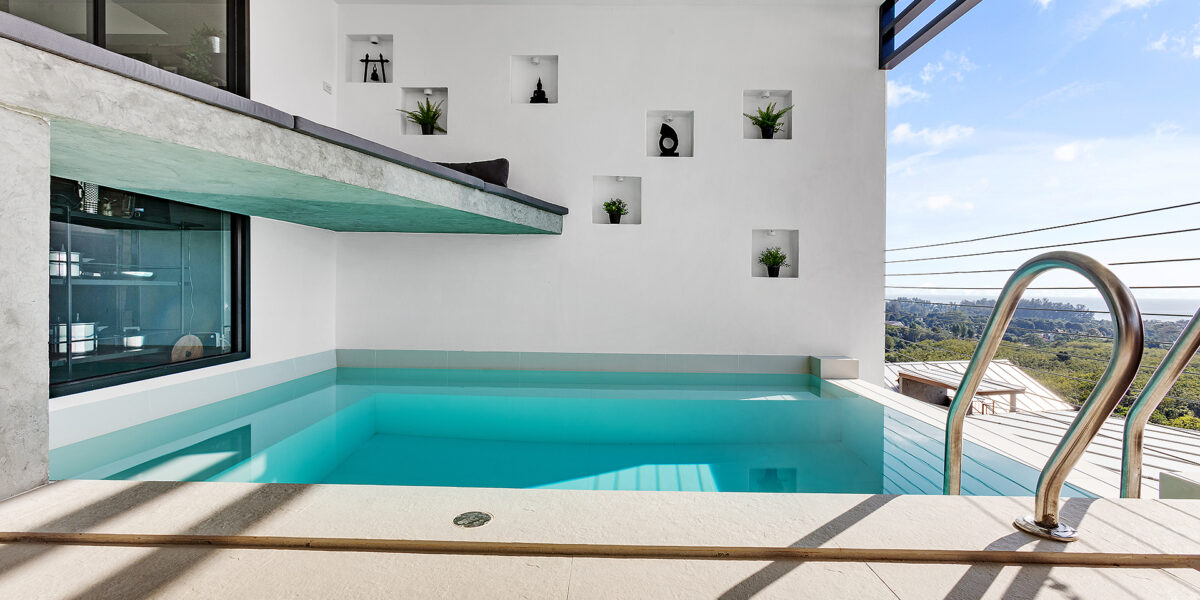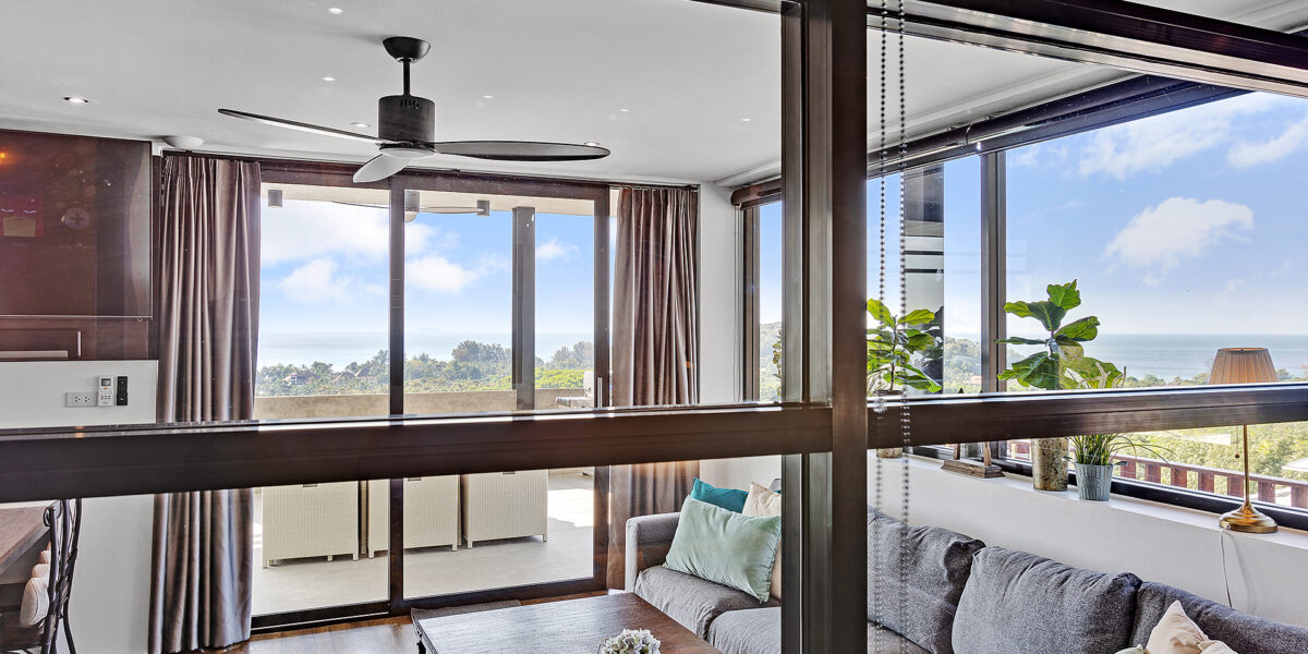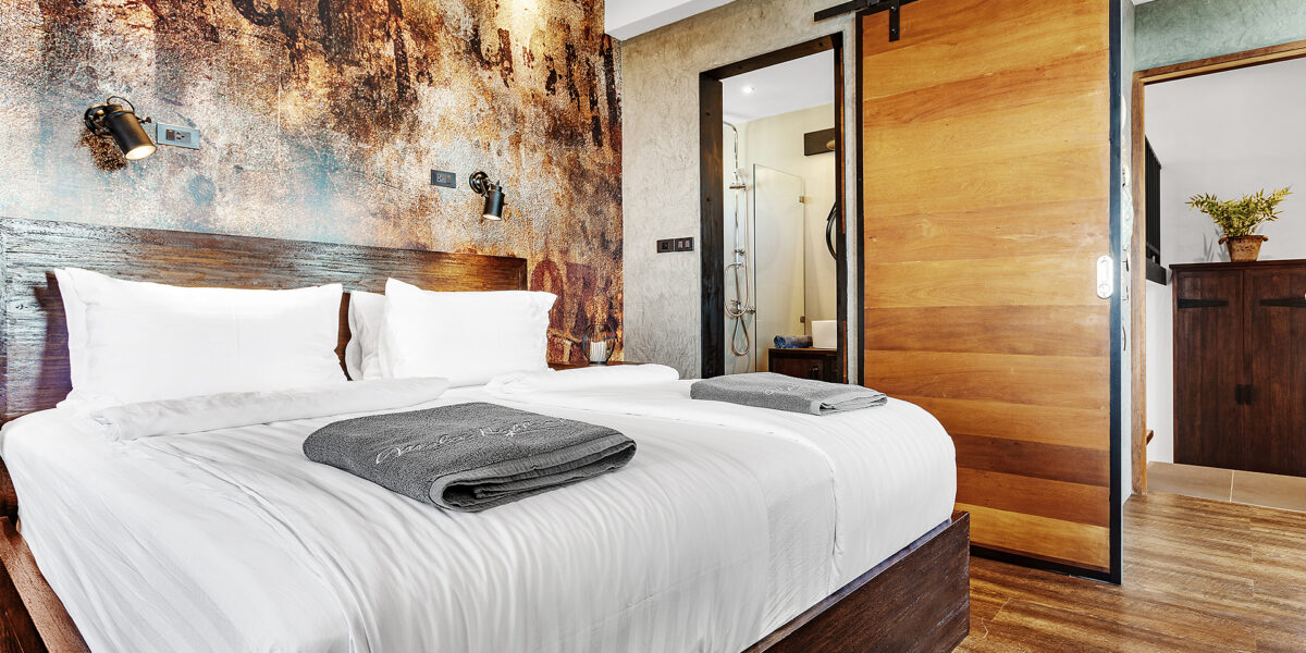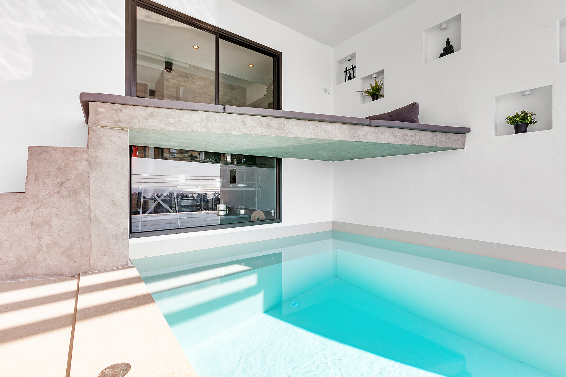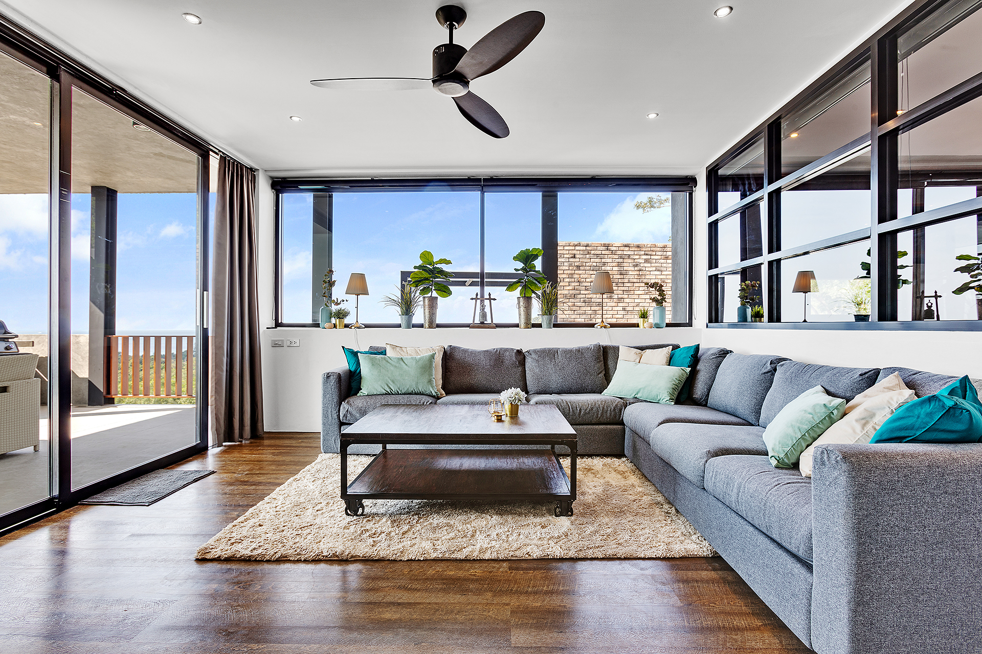 The highlight of B4 is its incredible sea-view terrace, featuring an infinity pool, a luxurious daybed above the pool with a wall fan, a large dining table with a ceiling fan, and a barbecue—creating the ultimate outdoor space for relaxation and dining while taking in the breath-taking surroundings.