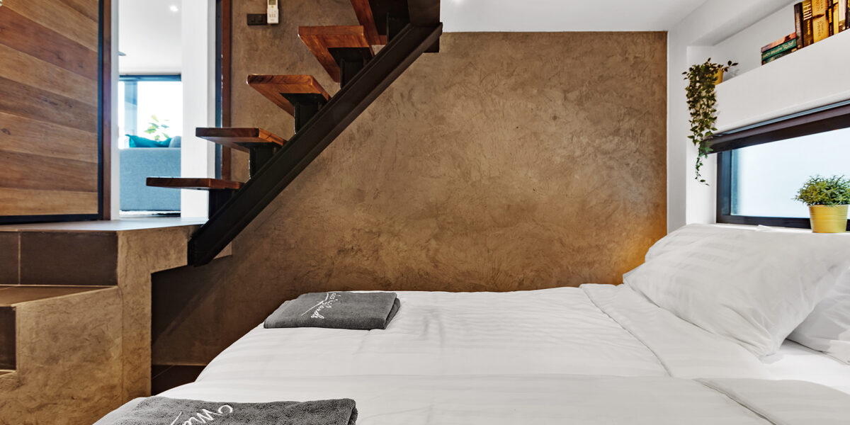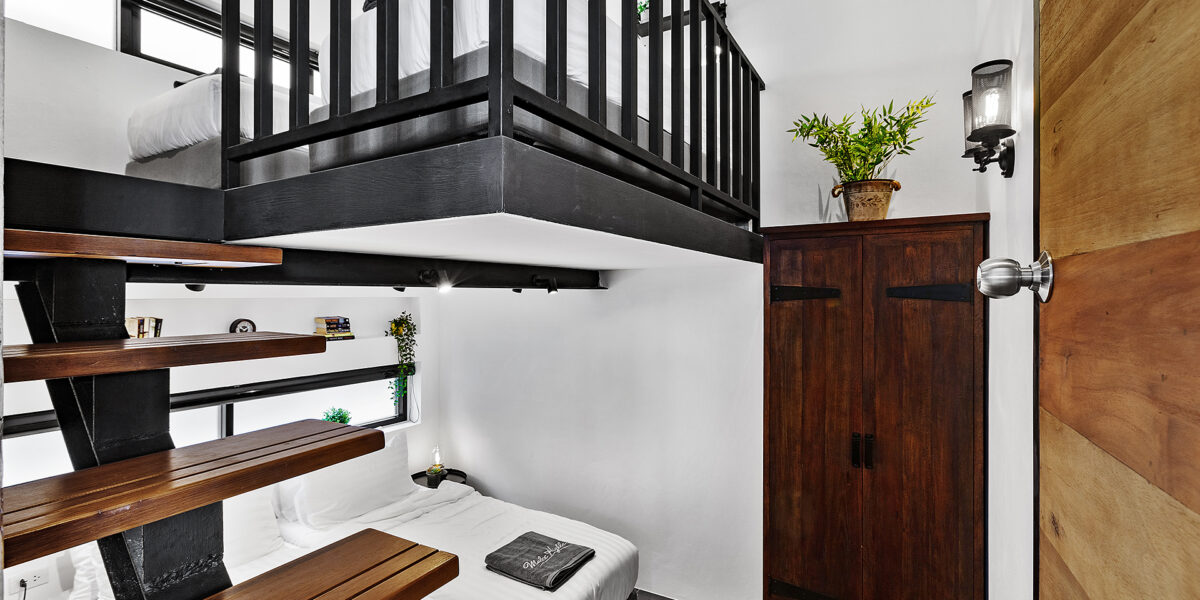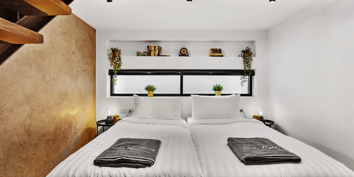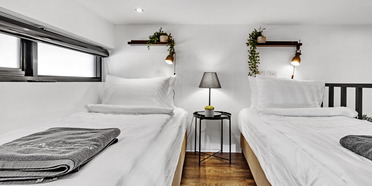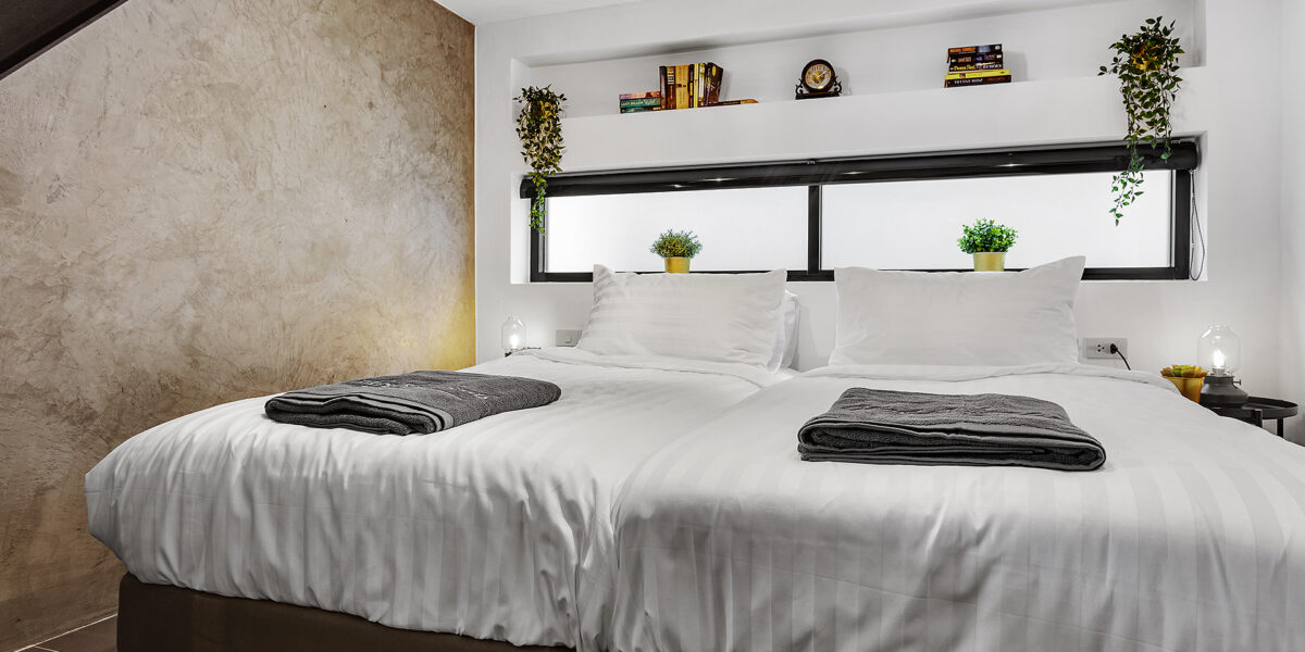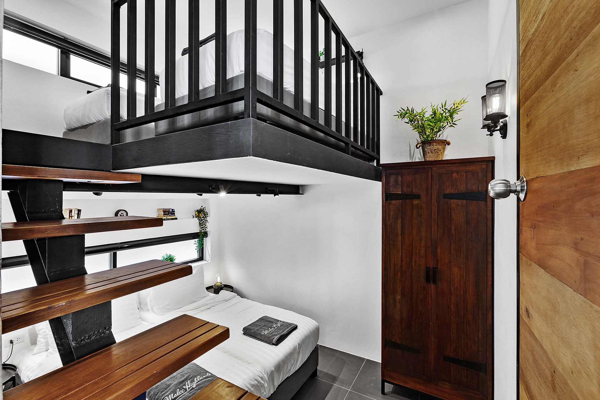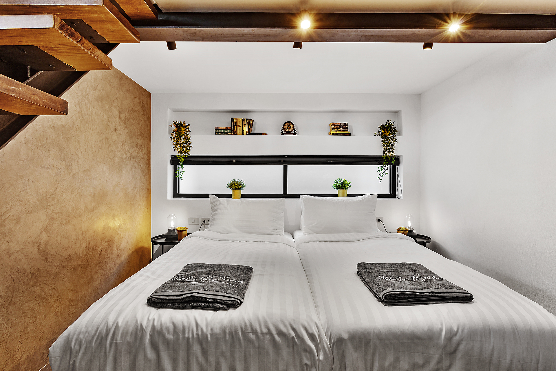 The second bedroom is a cleverly designed two-level space, with two single beds on the lower level and two single beds on the upper level, along with a TV—perfect for families or groups needing flexible sleeping arrangements. All beds are fitted with high-quality IKEA mattresses and premium linens to ensure a restful night’s sleep.