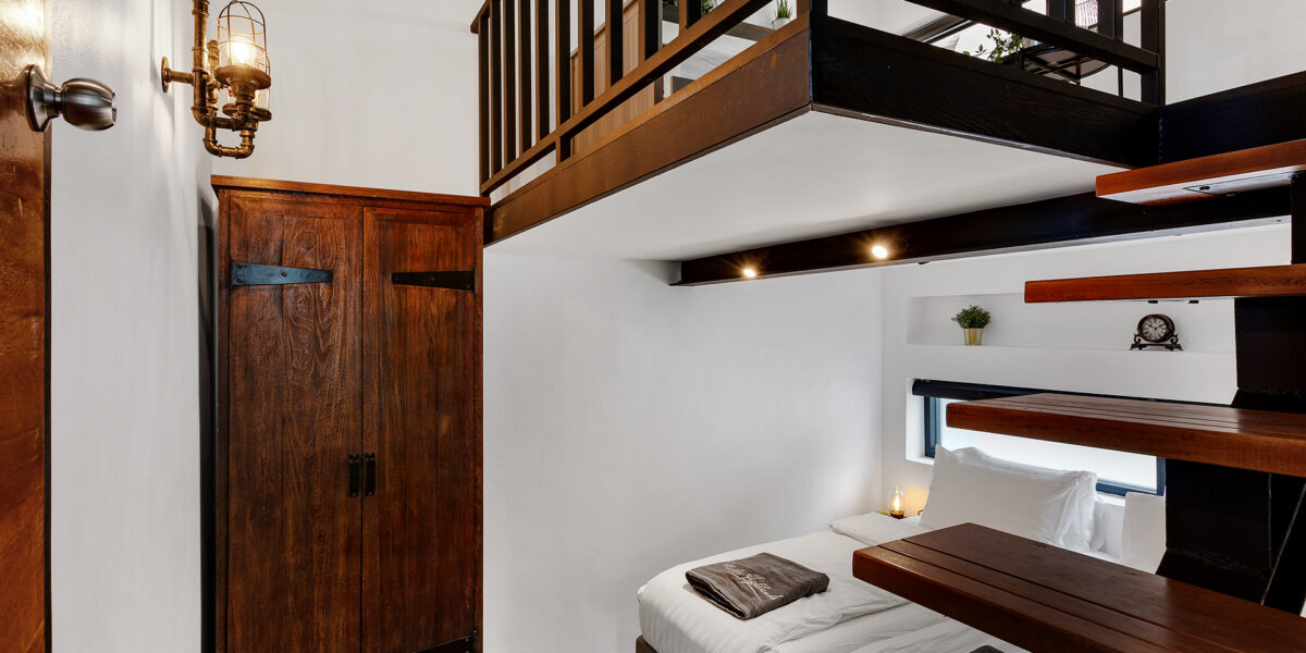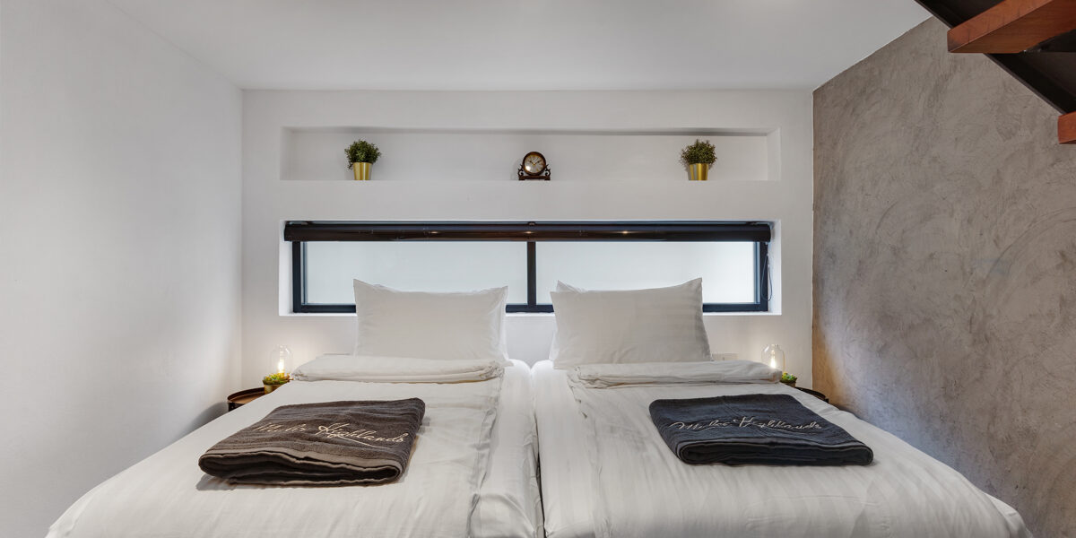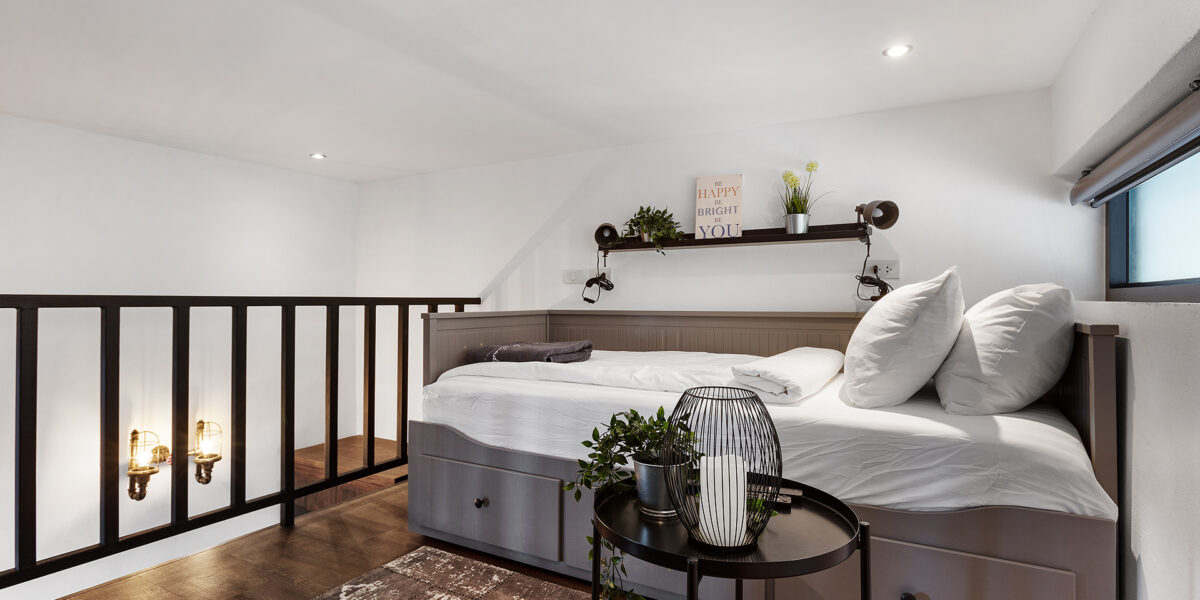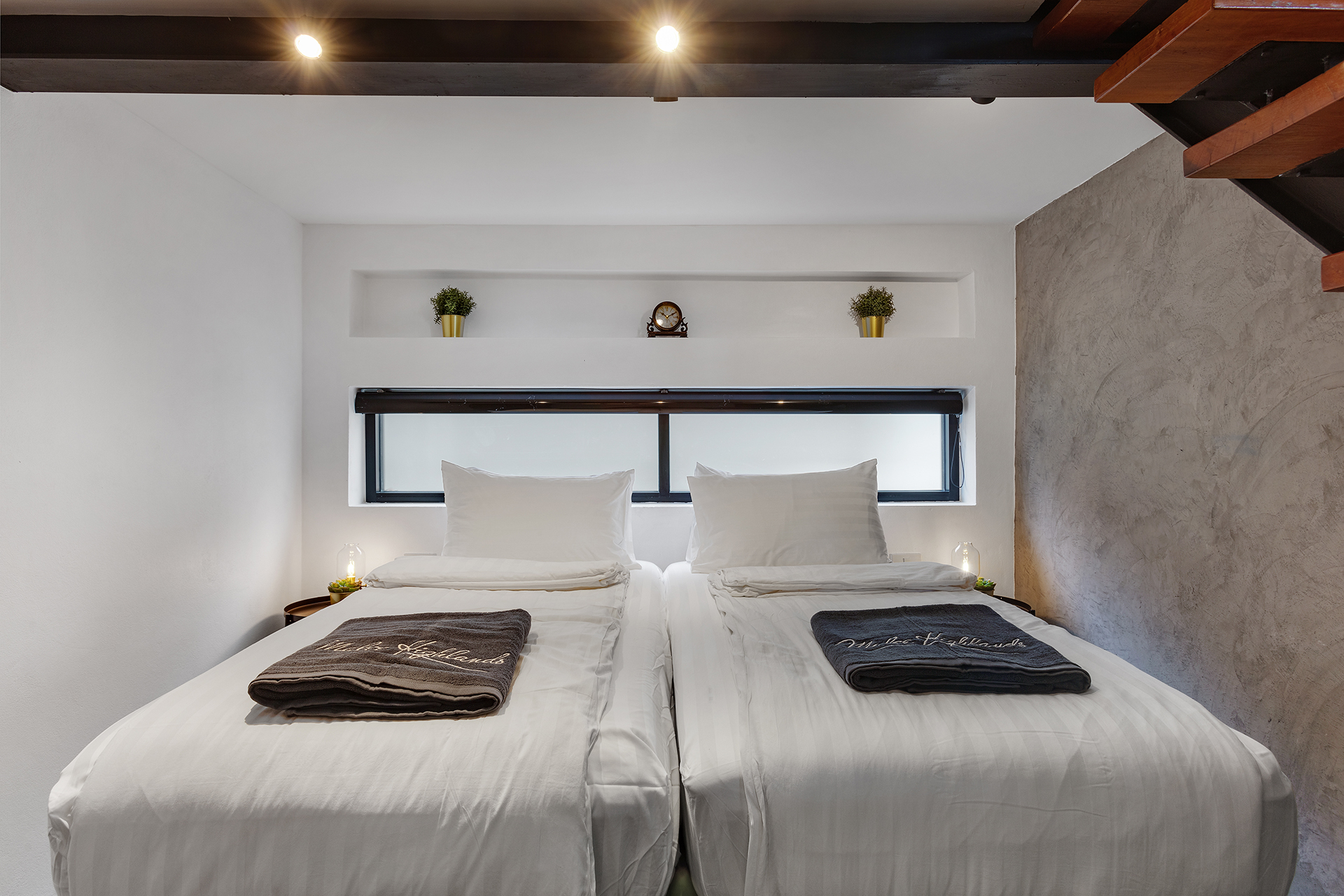 The second bedroom is a cleverly designed two-level space, with two single beds on the lower level and a bed-sofa on the upper level, along with a TV—perfect for families or groups needing flexible sleeping arrangements. All beds are fitted with high-quality IKEA mattresses and premium linens to ensure a restful night’s sleep.