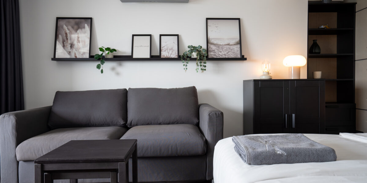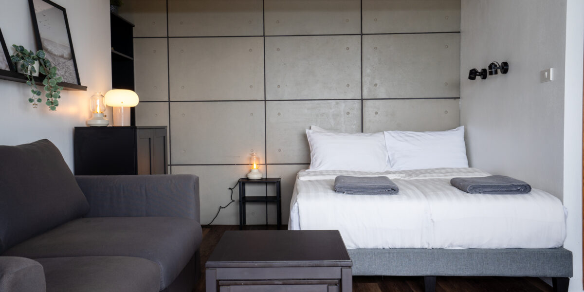 Welcome to B5, a cozy two-level apartment with stunning sea views, ideal for solo travellers, couples or a three person family with children from 6-12 years . This 35 sqm studio blends industrial design with modern amenities.