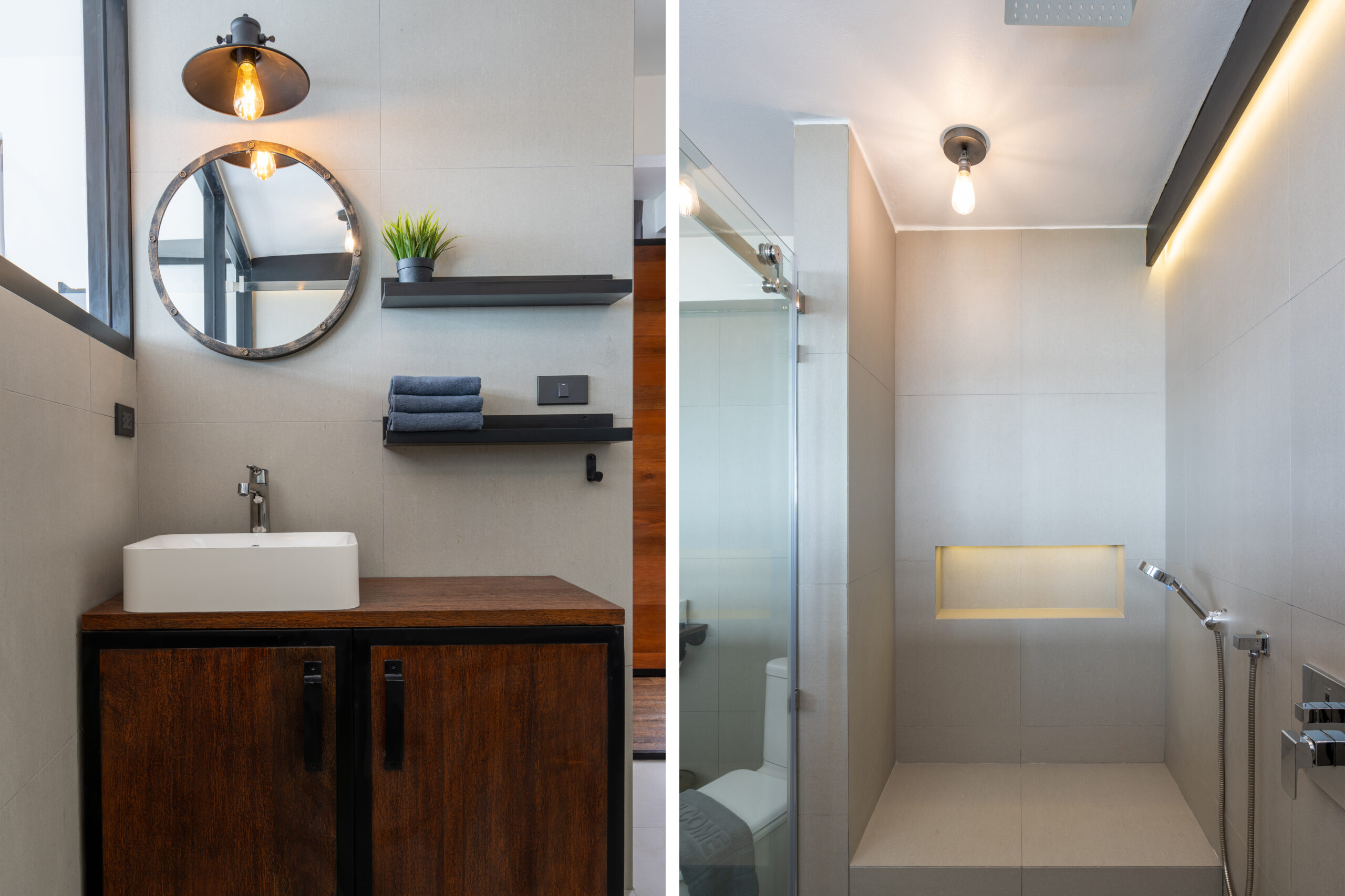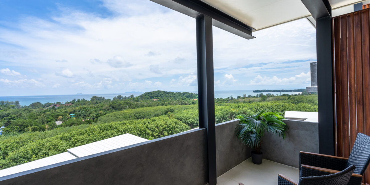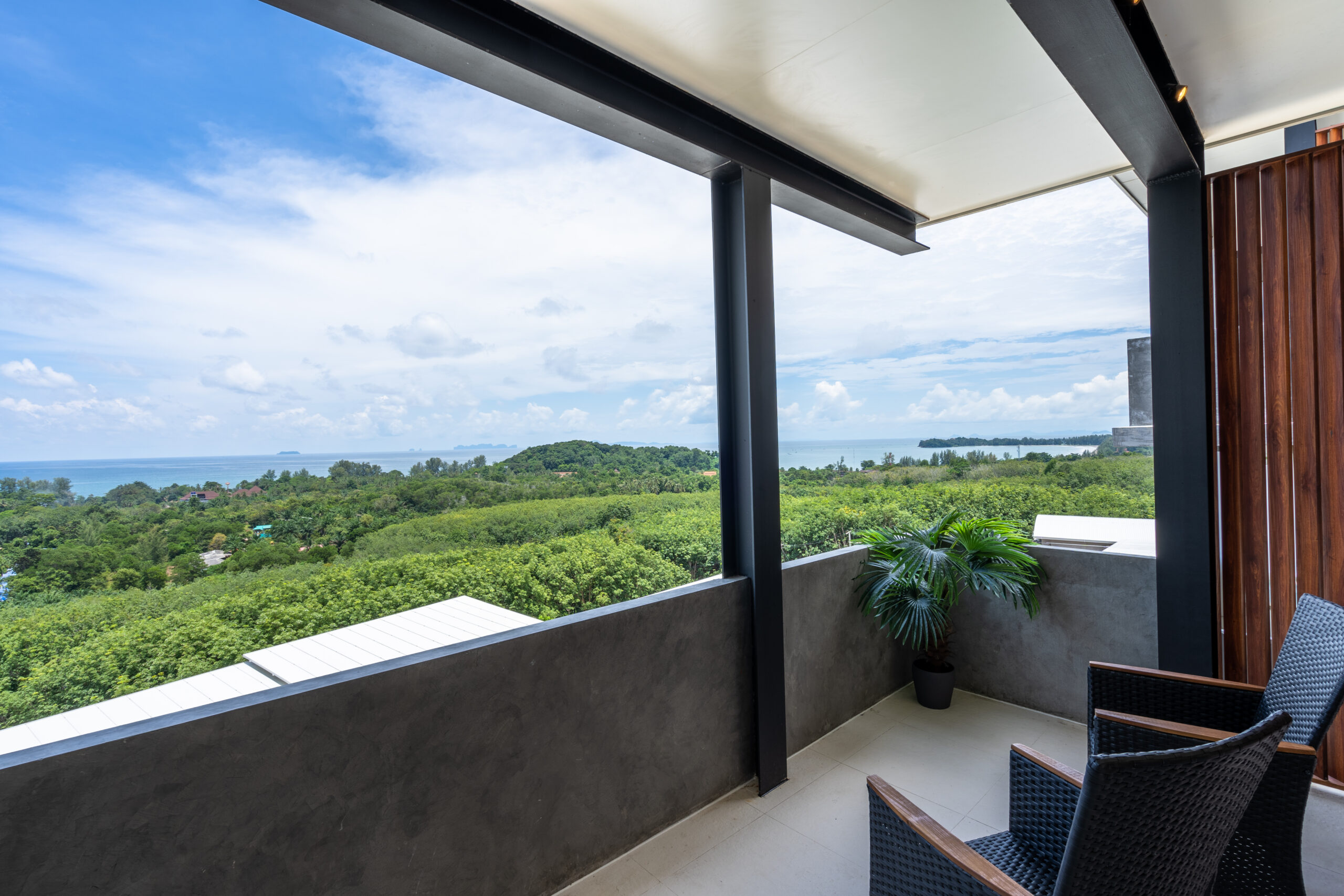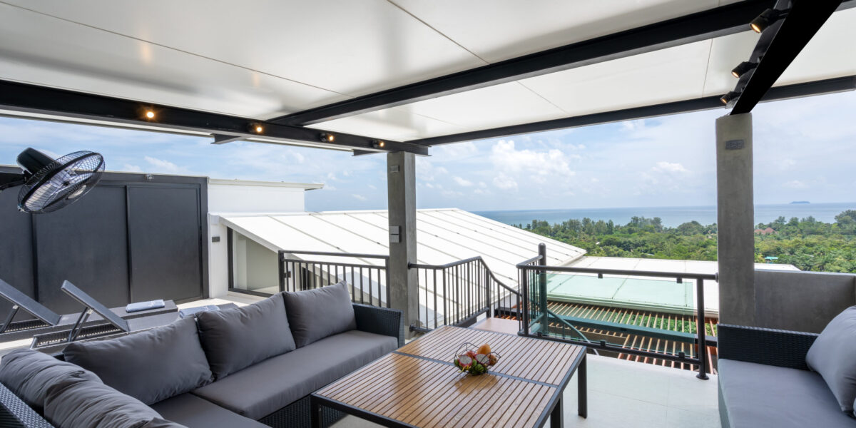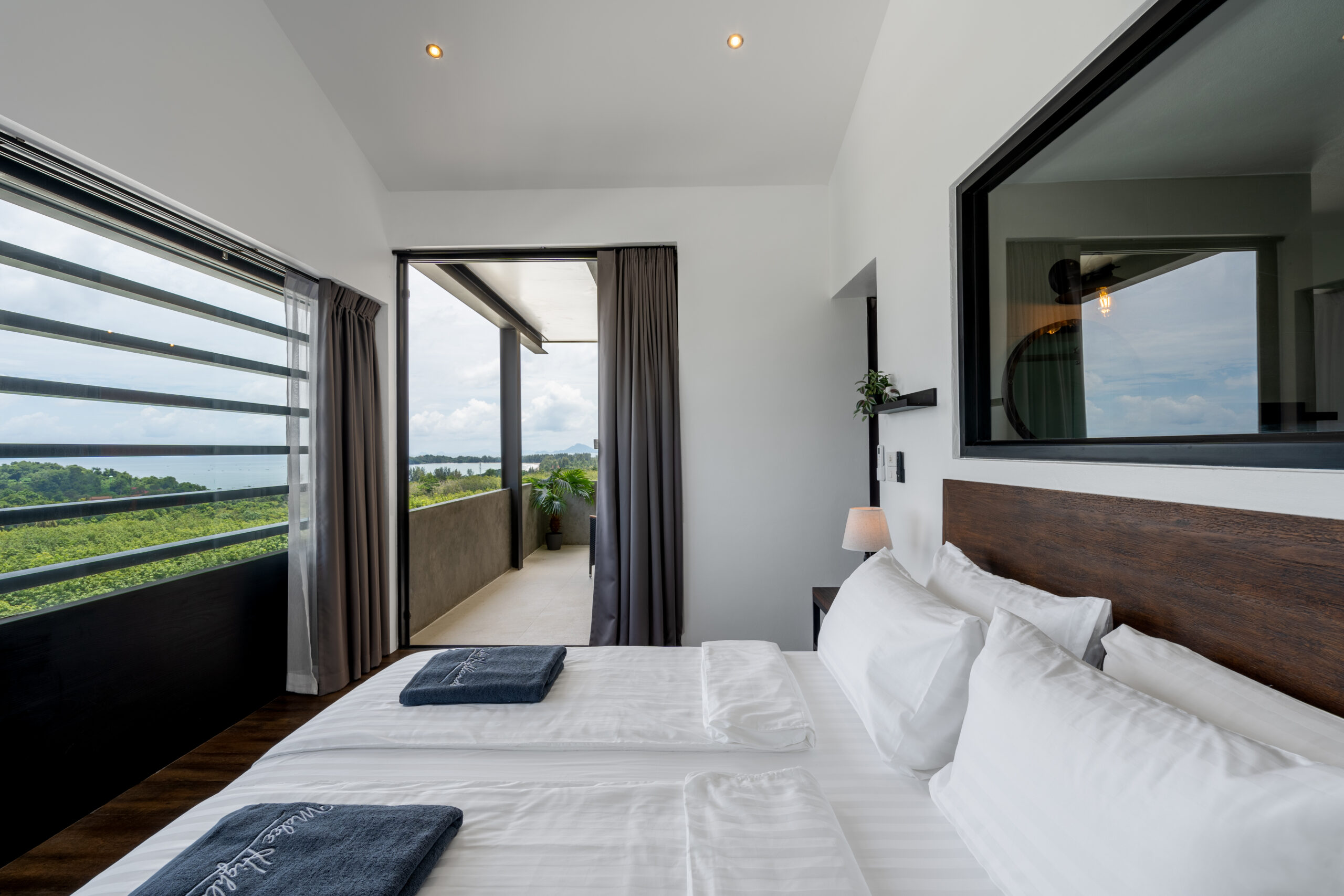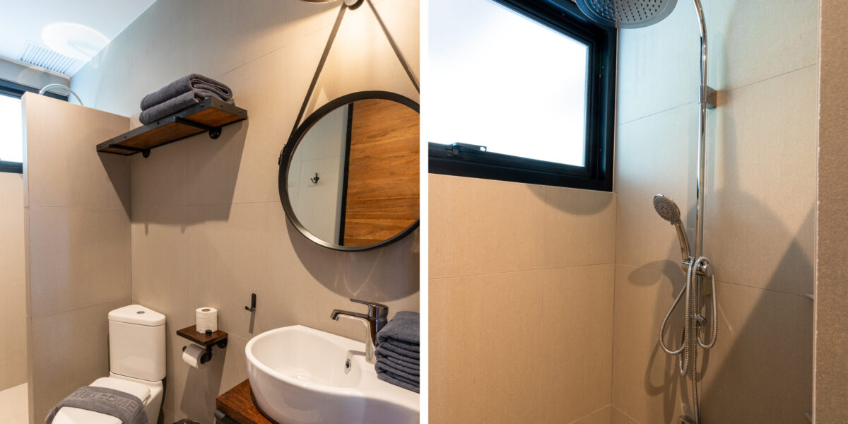 The master bedroom features a king-size bed, an en-suite bathroom, and large windows that offer incredible sea views. It also has its own air conditioning unit, a ceiling fan, and direct access to the lower terrace. All beds are fitted with high-quality IKEA mattresses and premium linens to ensure a restful night’s sleep.
