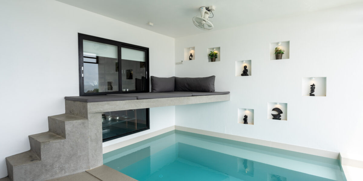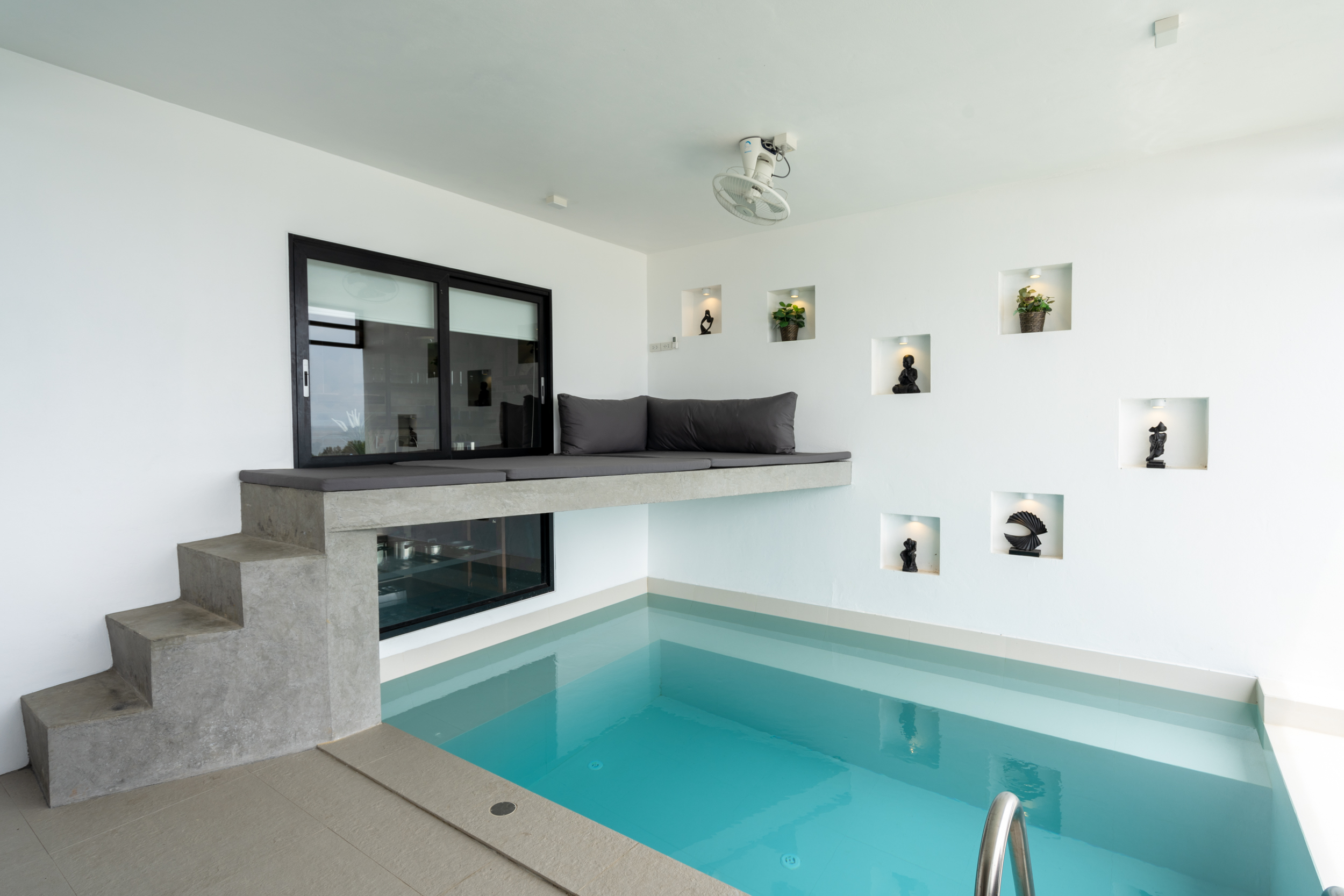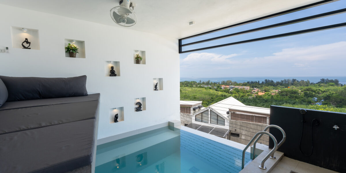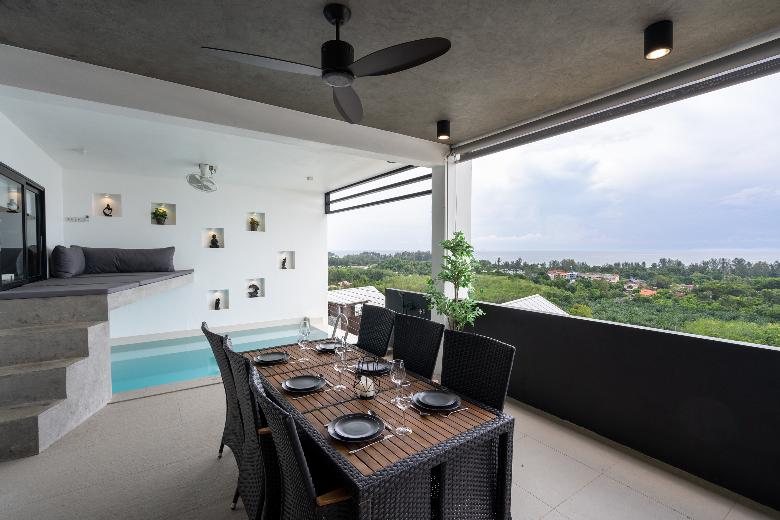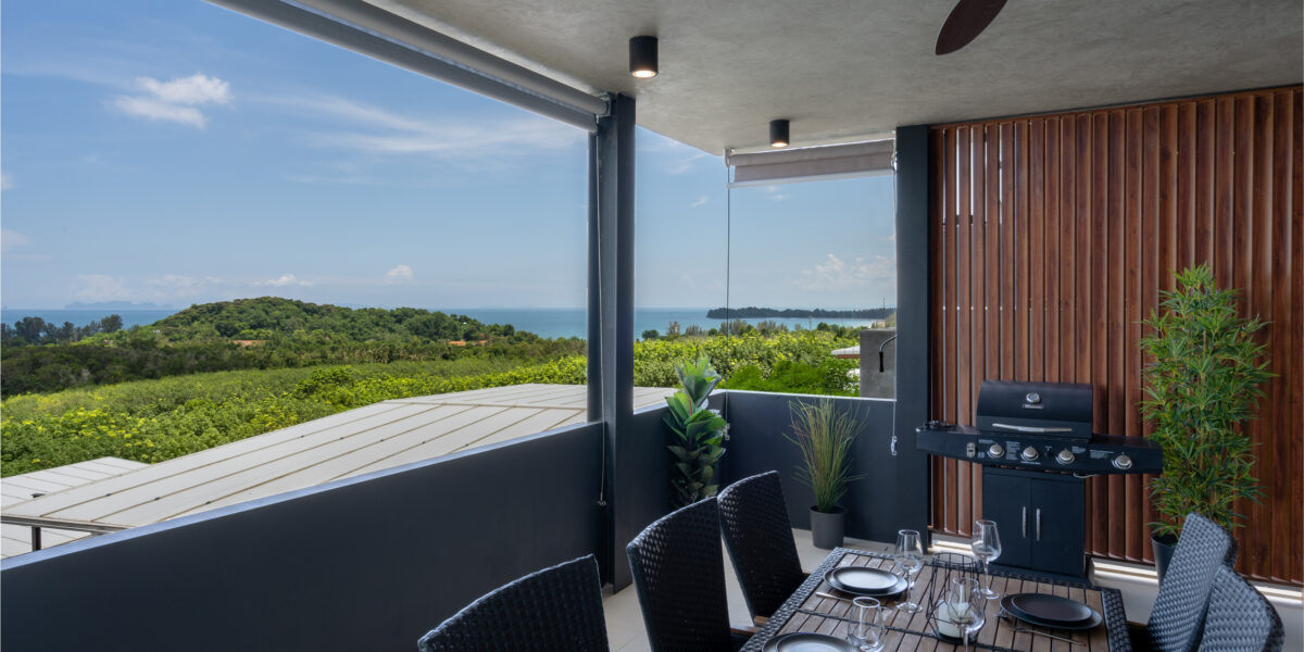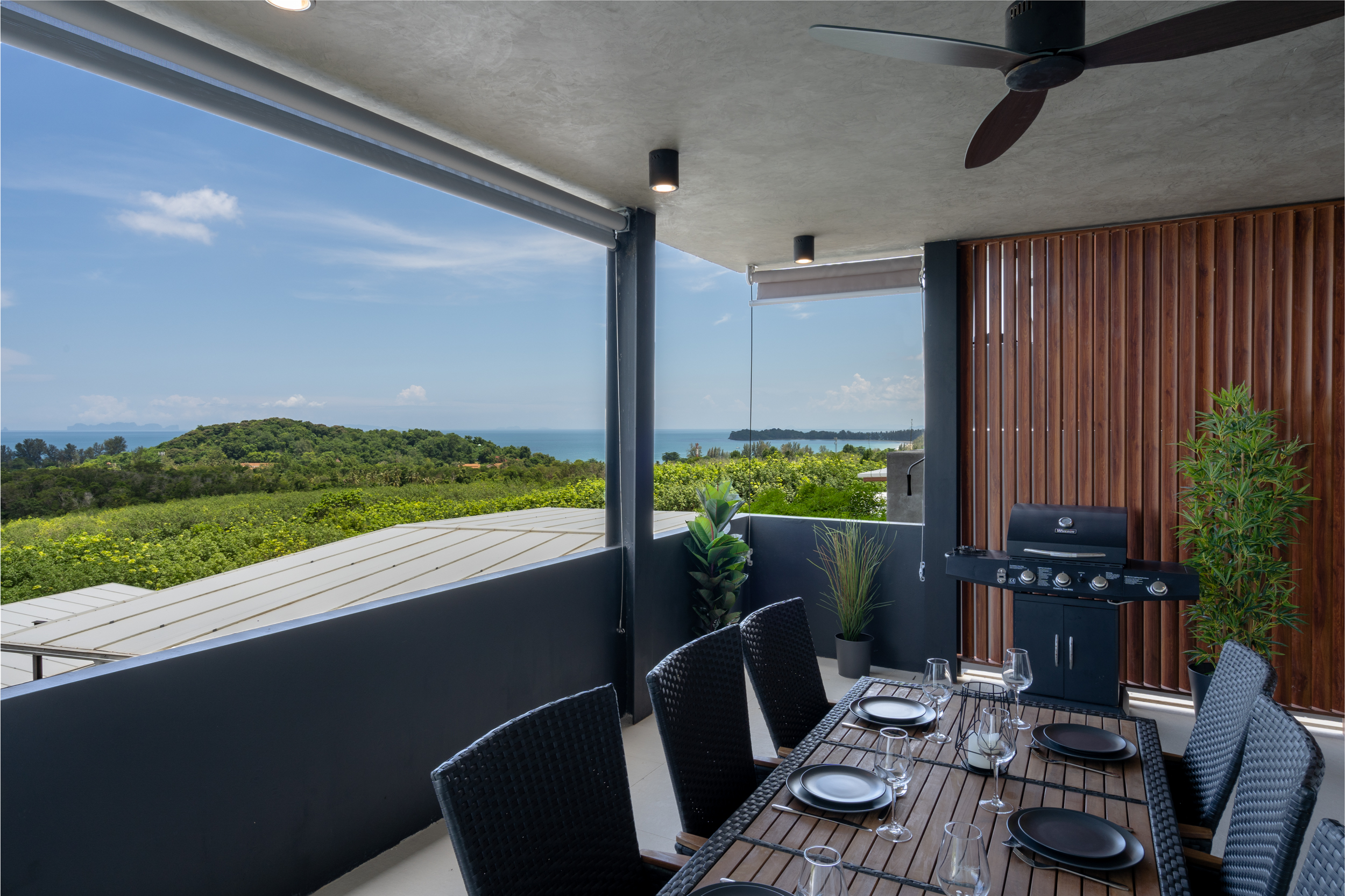 The highlight of C3 is its incredible sea-view terrace, featuring an infinity pool, a luxurious daybed above the pool with a wall fan, a large dining table, and a barbecue—creating the ultimate outdoor space for relaxation and dining while taking in the breath-taking surroundings.