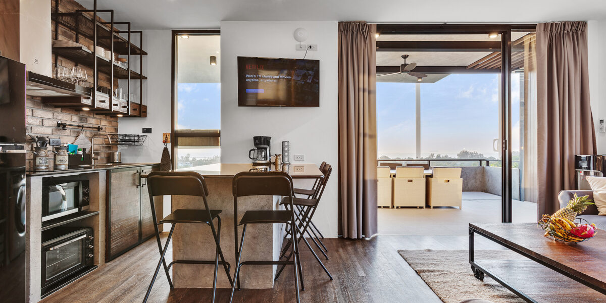 Welcome to Apartment F3 – a spacious 98 sqm retreat offering breath-taking views of the Andaman Sea, modern comfort, and your very own private infinity pool. Thoughtfully designed for families or groups of up to six, this apartment combines smart layout with stylish details to create a truly memorable stay.