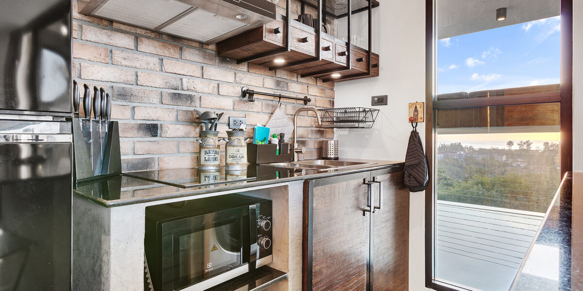 The fully equipped kitchen includes everything you need for easy cooking and entertaining: a two-burner cooktop, oven, microwave, full-size refrigerator, toaster, coffee machine, and a full set of cookware and utensils. A washer/dryer is also included for your convenience.