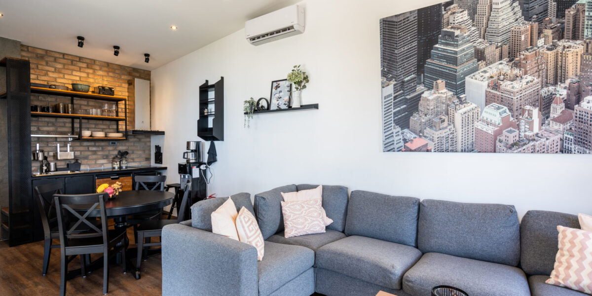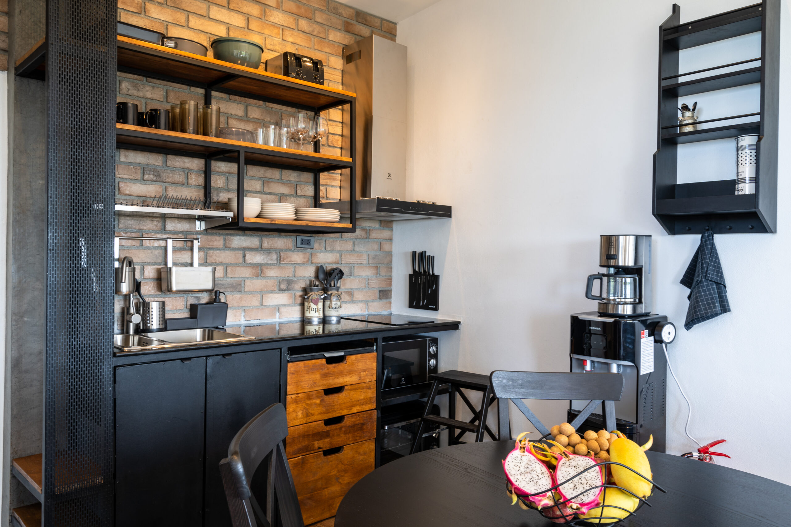 Upstairs, the loft bedroom provides additional sleeping space for two, making the apartment well-suited for families or groups. All beds are fitted with high-quality IKEA mattresses and premium linens to ensure a restful night’s sleep.