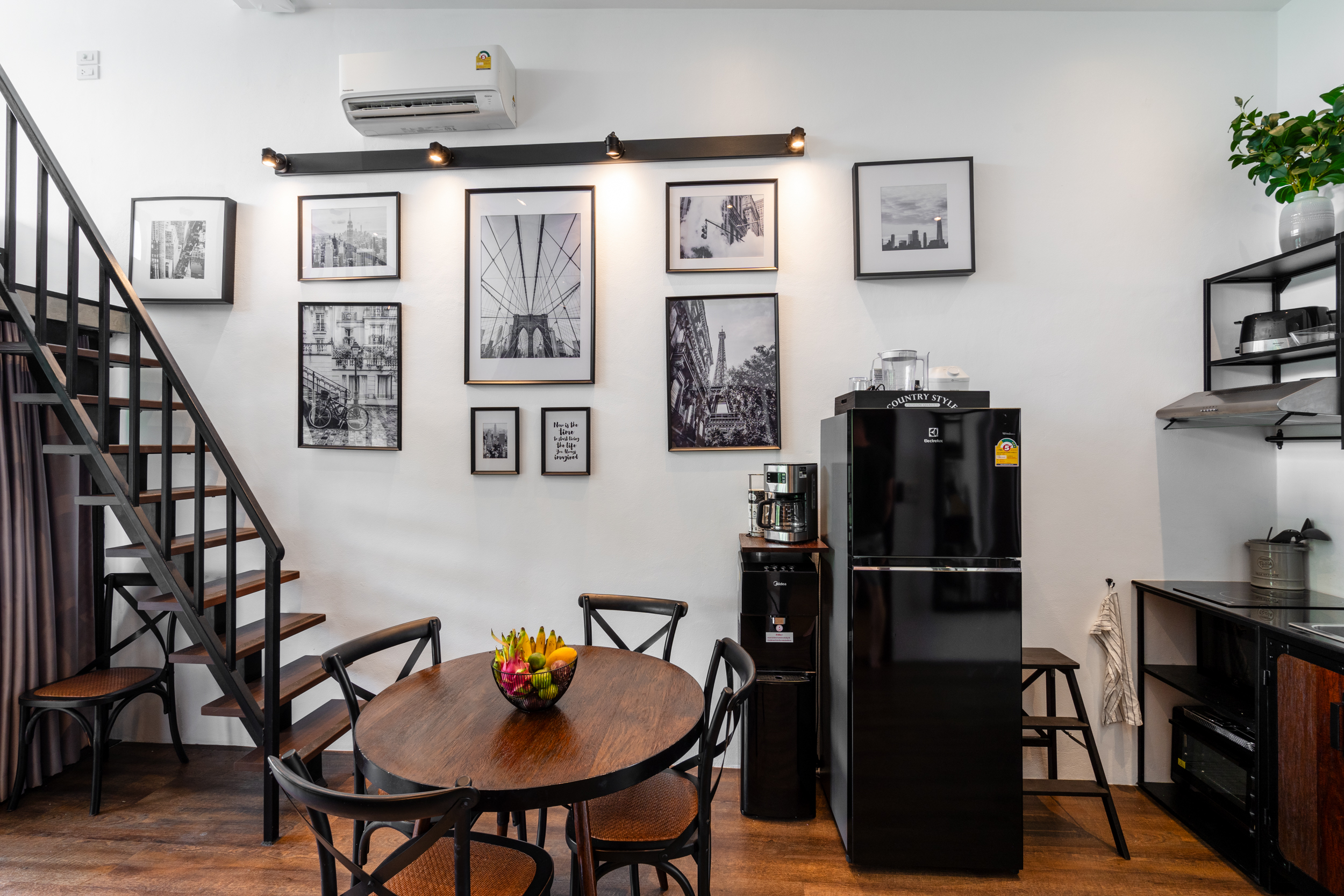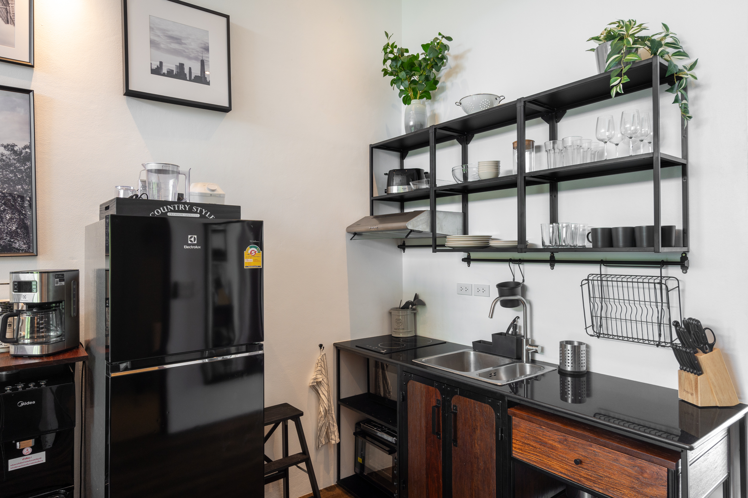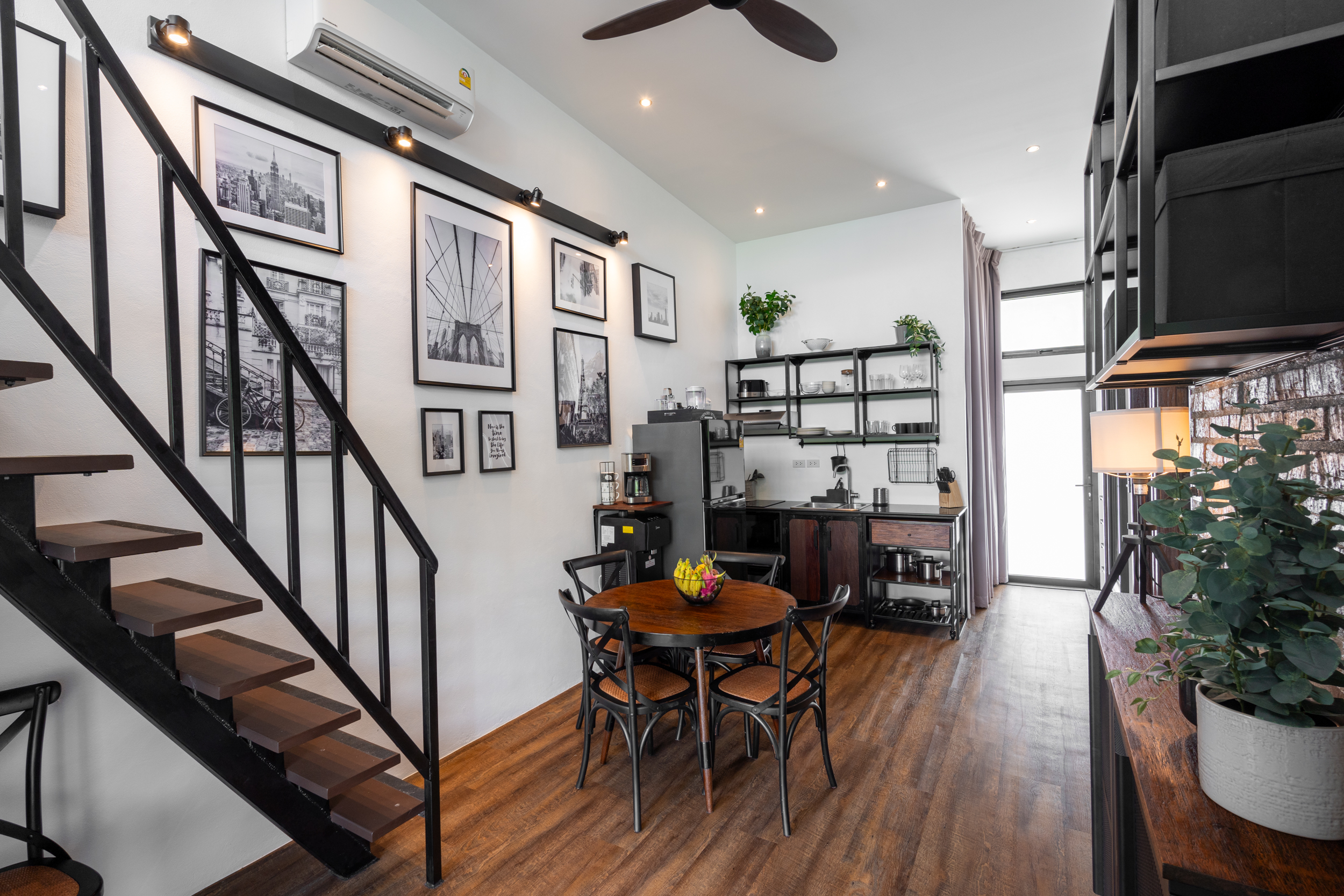 Experience the perfect blend of modern amenities, industrial design, and tranquil jungle ambiance in this thoughtfully crafted apartment.