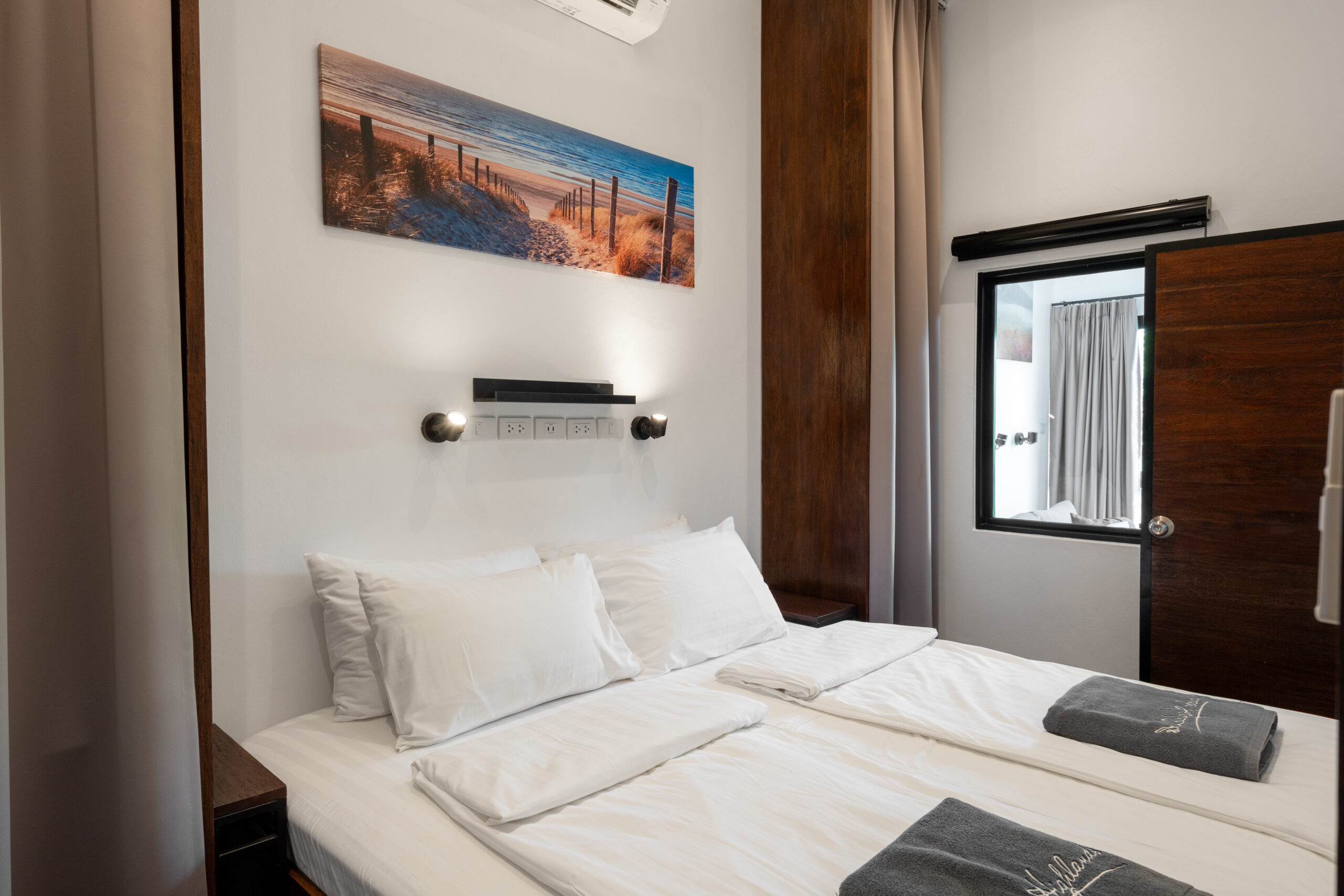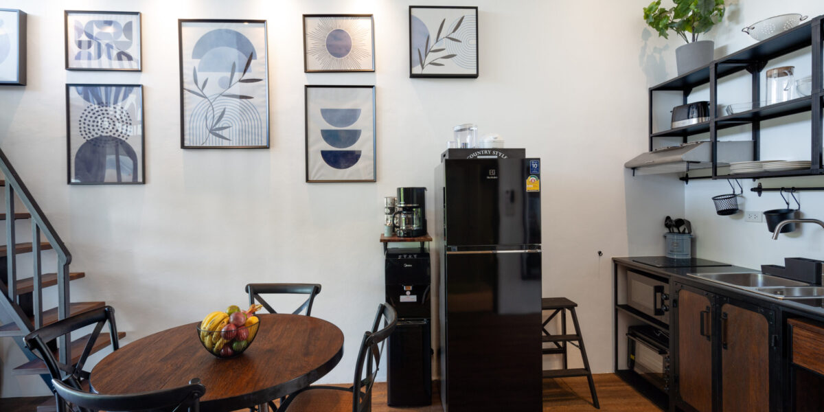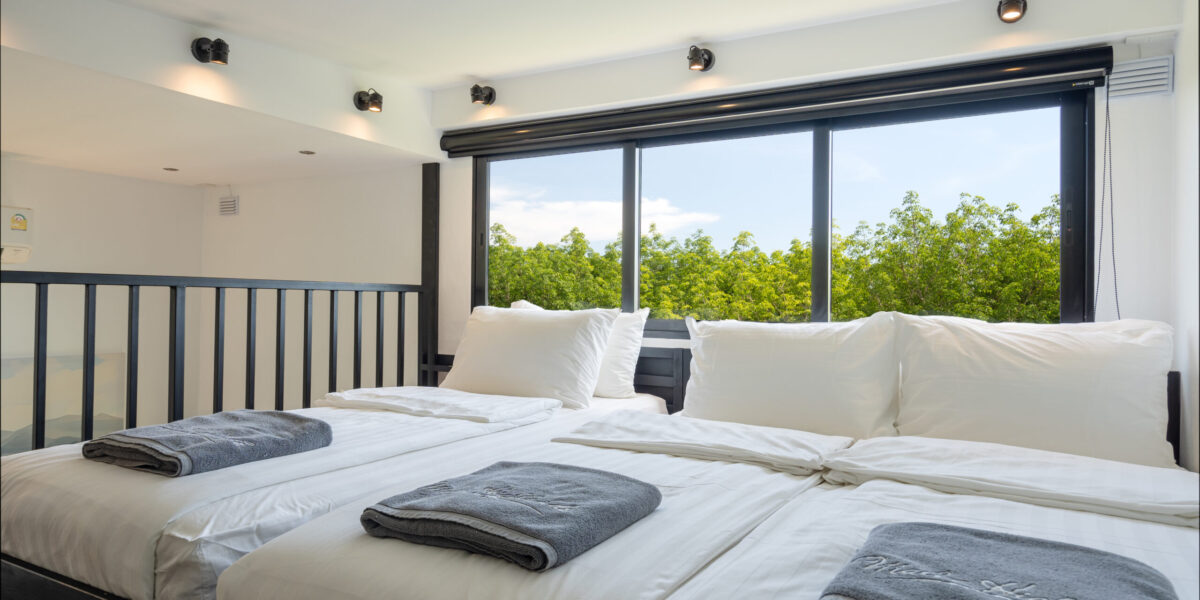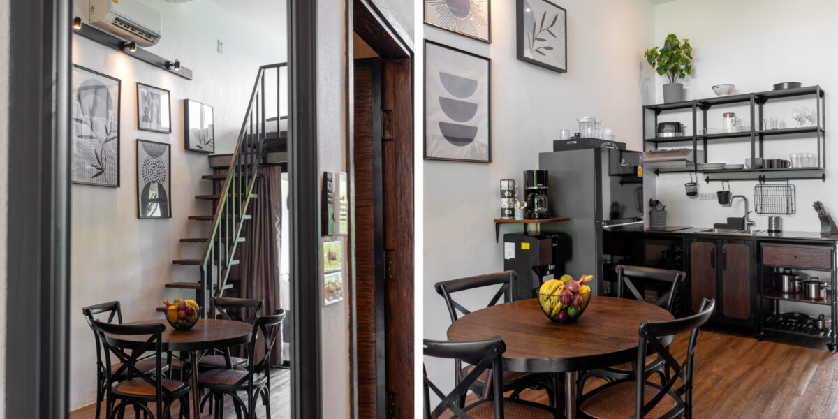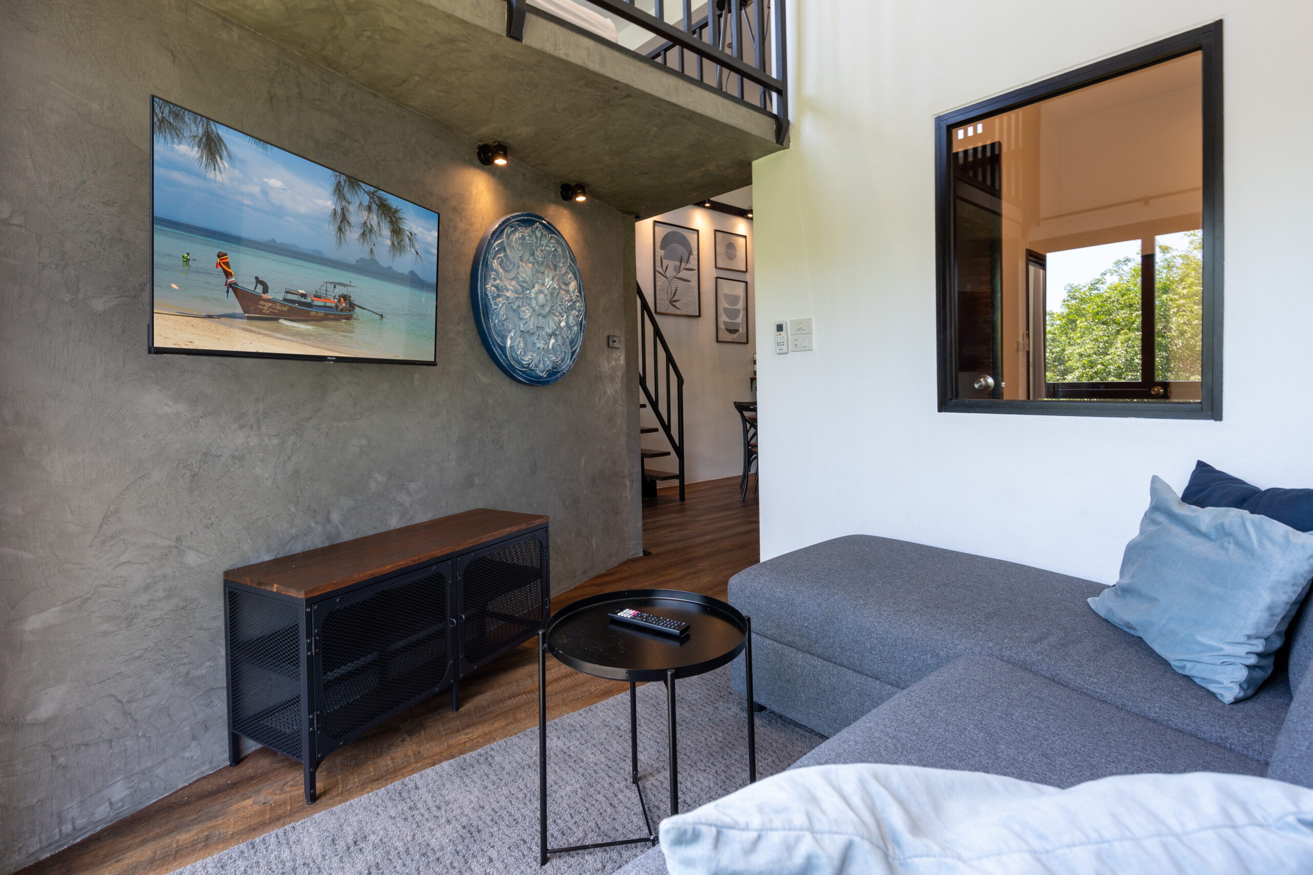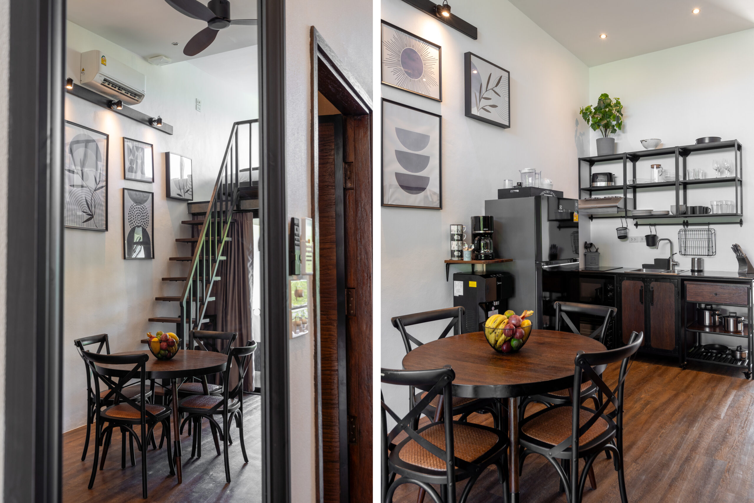 The master bedroom offers a peaceful escape, complete with a king-size bed, air conditioning, and wardrobes on each side of the bed. Upstairs, the loft serves as a versatile second sleeping area, featuring one queen-size bed, one single bed, and a large window with beautiful jungle views. All beds come with IKEA mattresses and premium linens to ensure a restful night’s sleep.