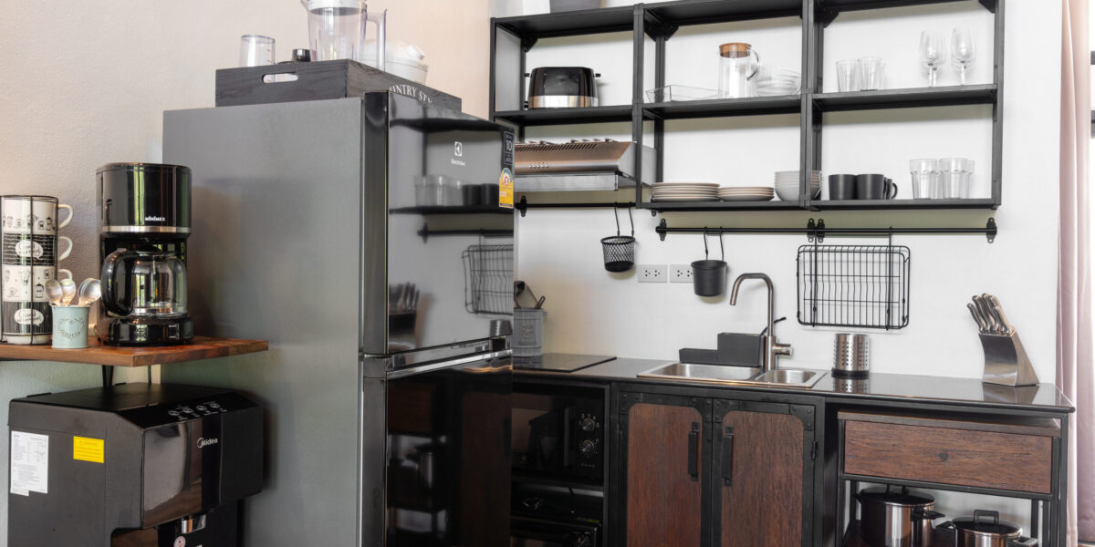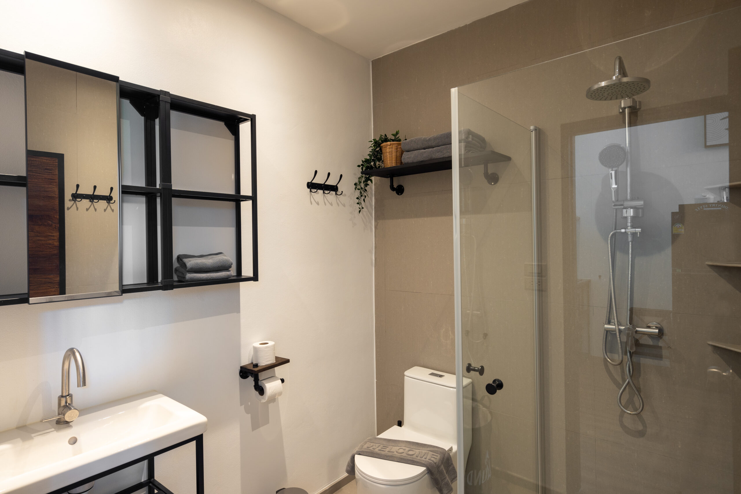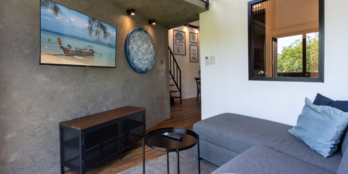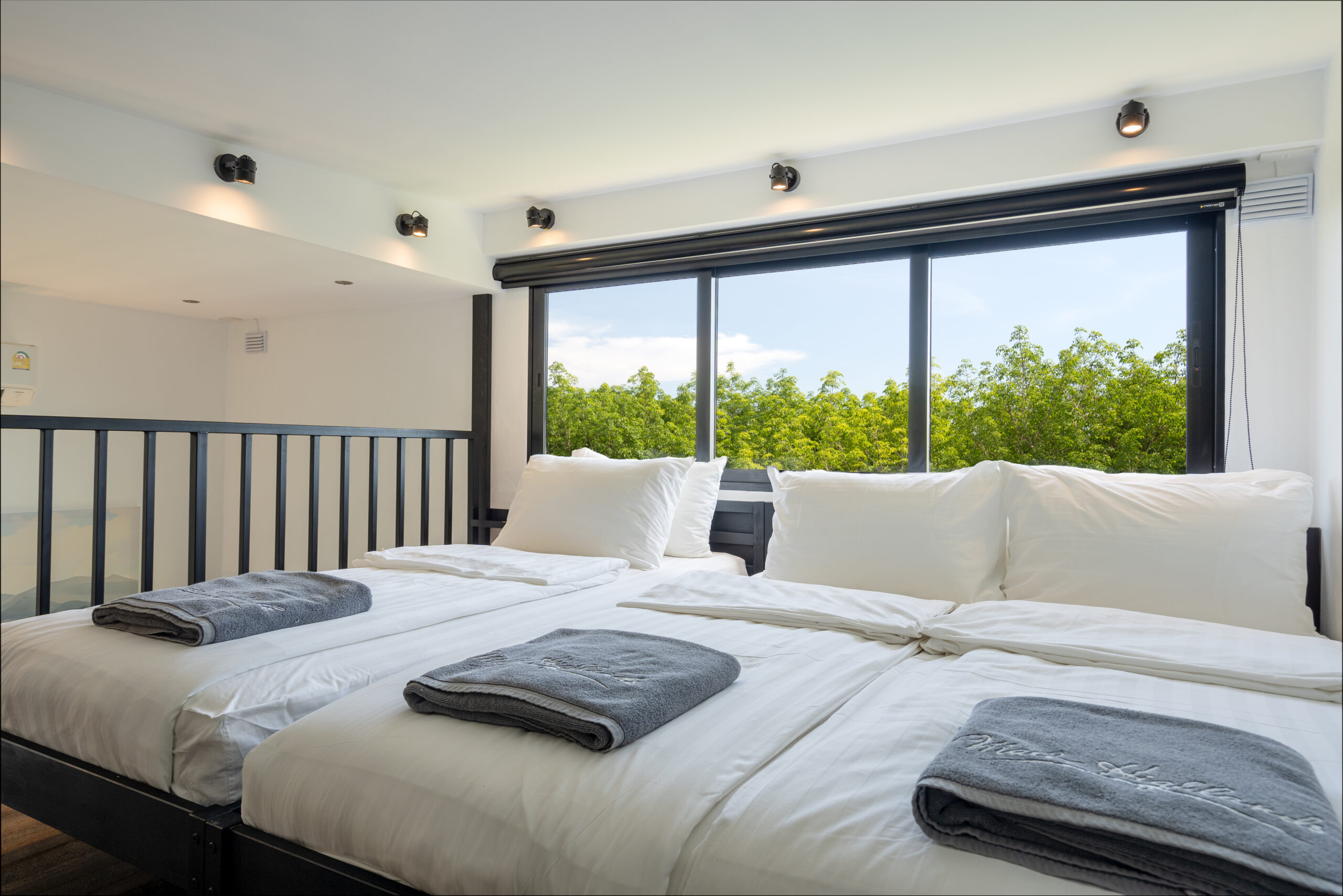 Welcome to Apartment I4 – a 57 sqm split-level home that blends industrial design with modern comfort, perfect for a medium-sized family or group. With high ceilings, large windows, and a cozy loft, this thoughtfully designed space offers a bright, airy atmosphere and stunning views of the surrounding jungle.