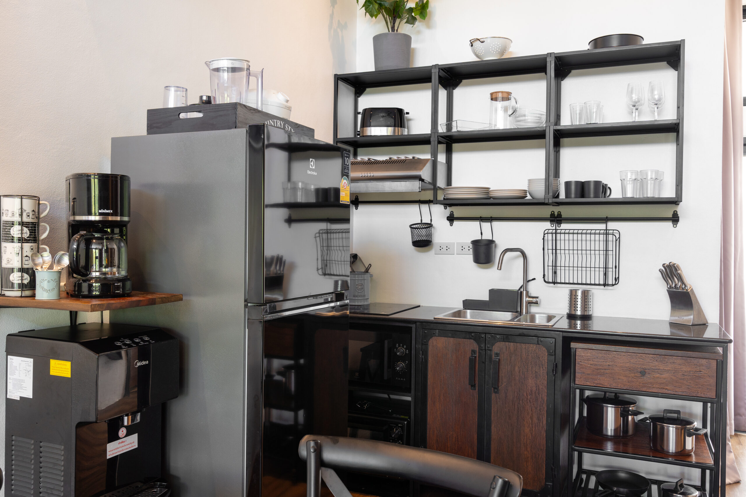 Experience the perfect blend of modern amenities, industrial charm, and tropical tranquility in this beautifully crafted apartment.