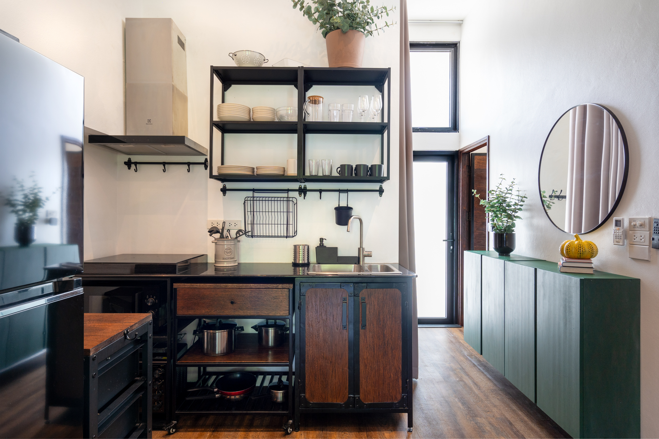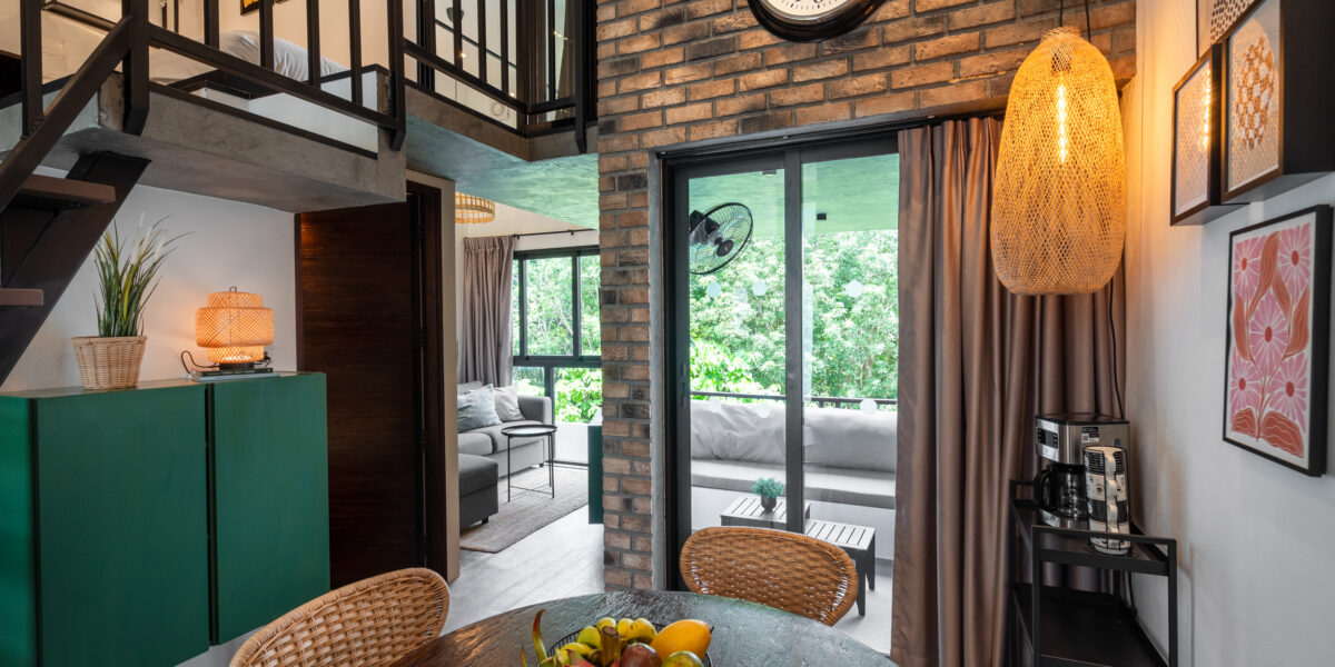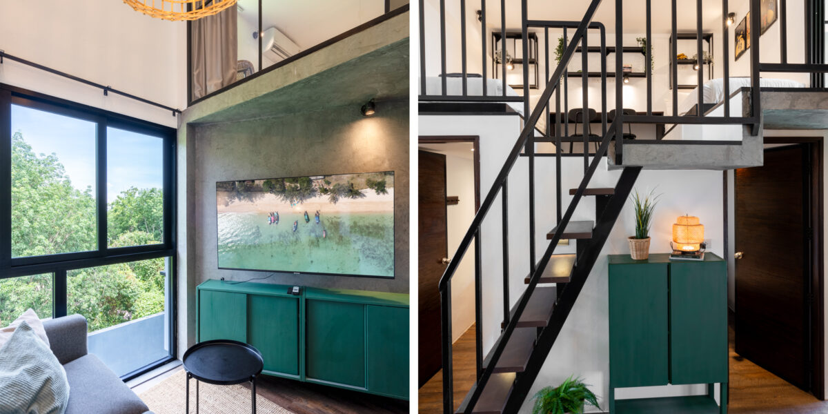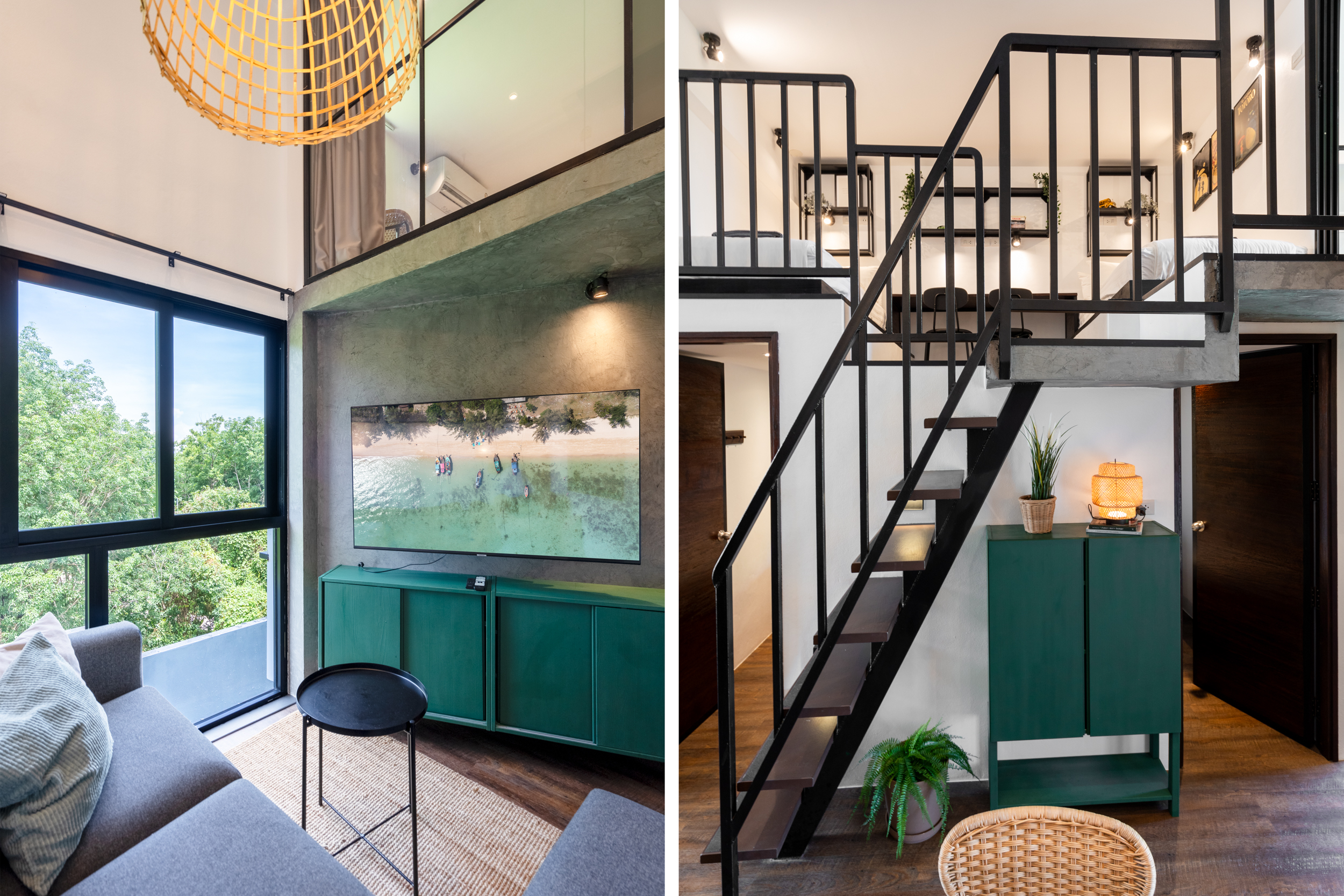 Enjoy a perfect mix of industrial charm, comfort, and tranquil jungle ambiance in this uniquely designed apartment.