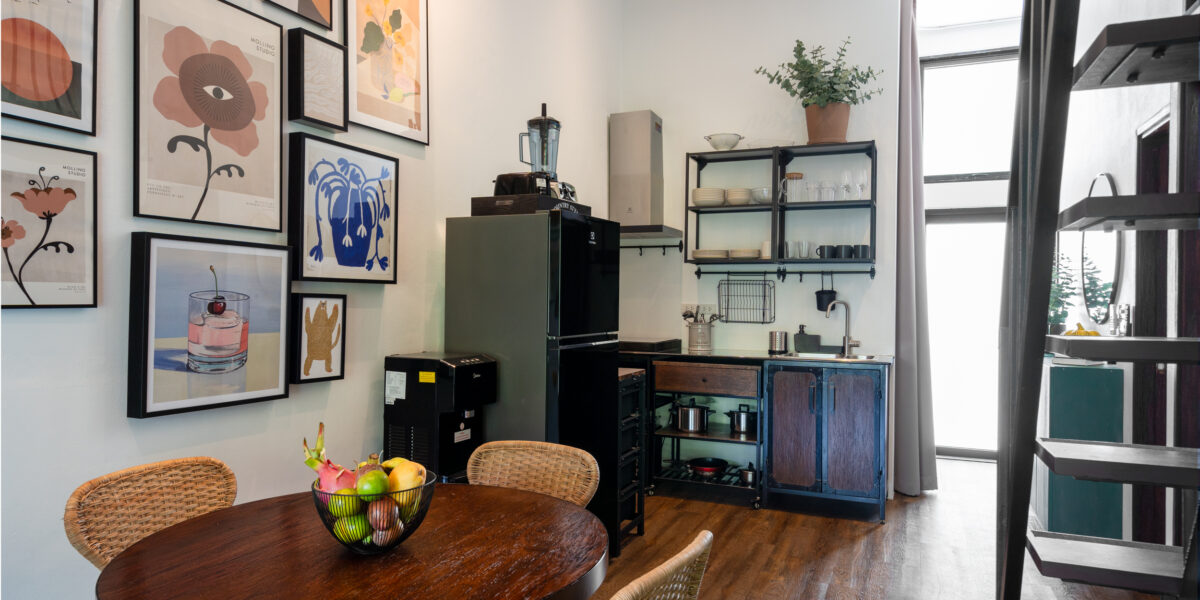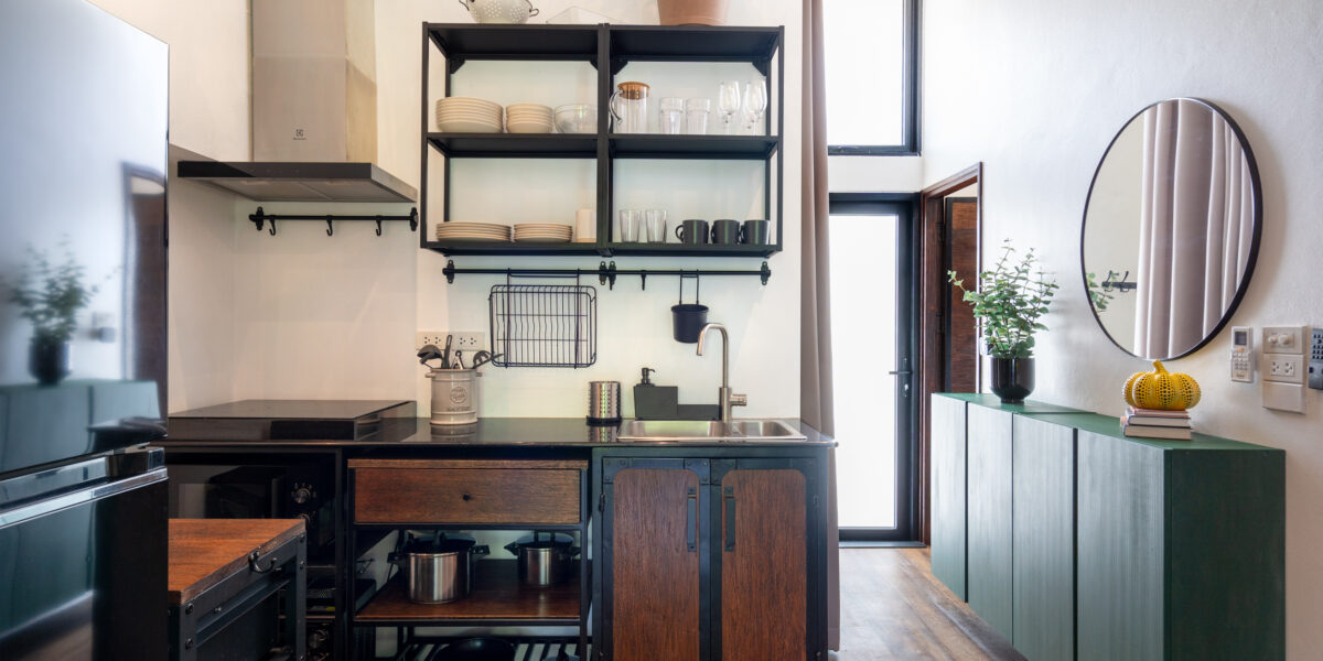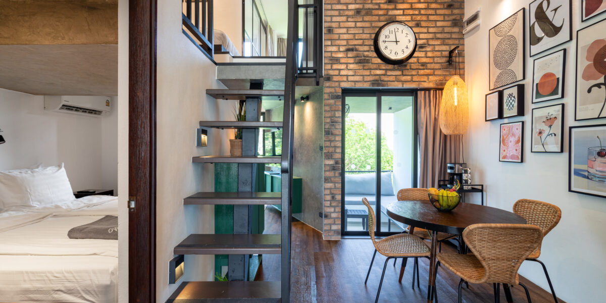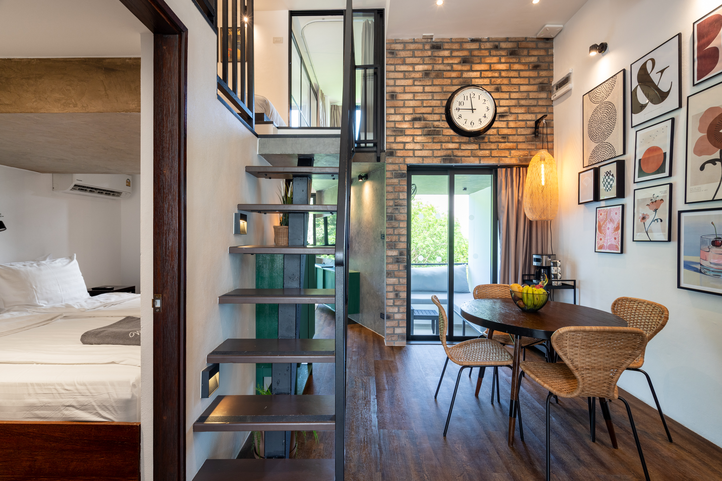 Enjoy a perfect mix of industrial charm, comfort, and tranquil jungle ambiance in this uniquely designed apartment.
