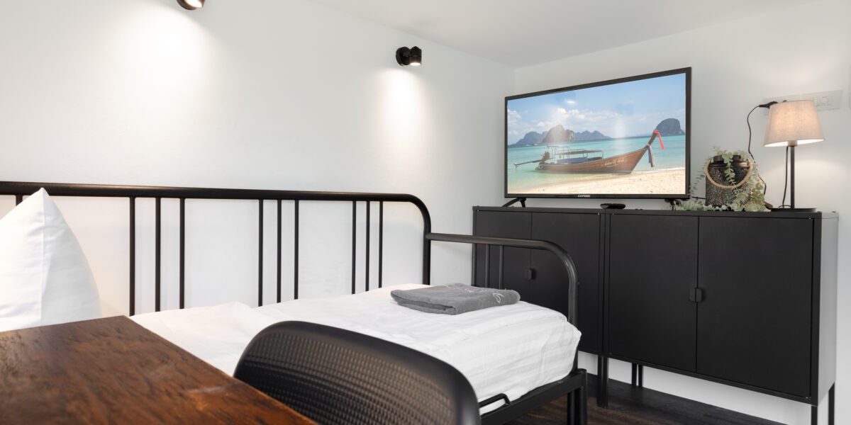 Welcome to Apartment I7 – a thoughtfully designed 56 sqm split-level retreat that combines industrial style with modern comfort. With two bedrooms, a loft room, and high ceilings, this spacious layout is ideal for families or small groups of up to five guests.