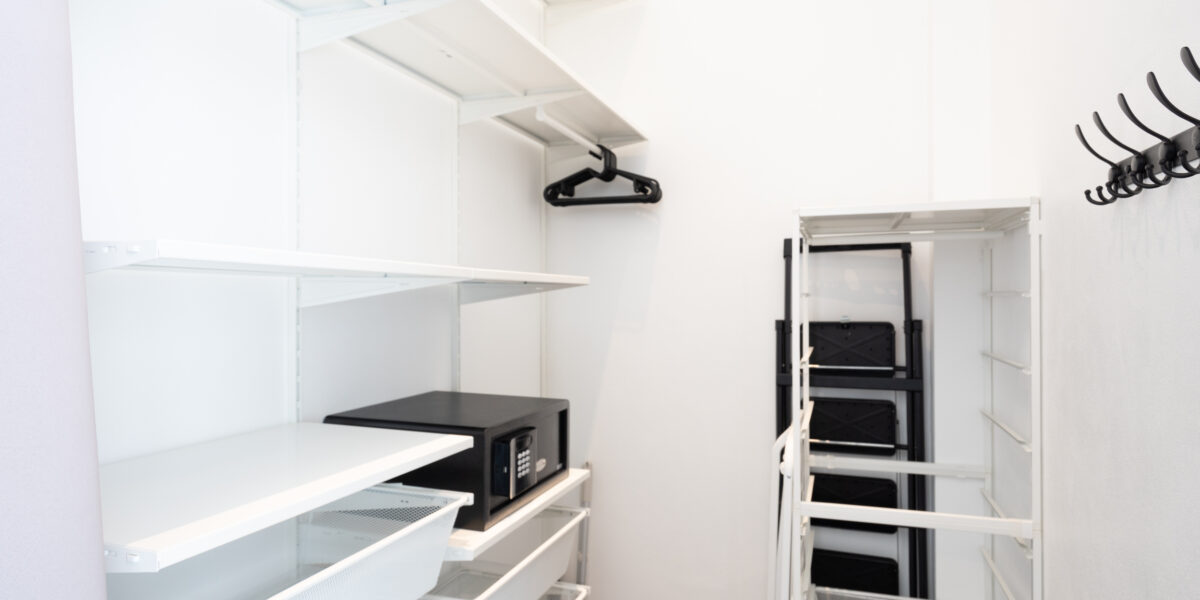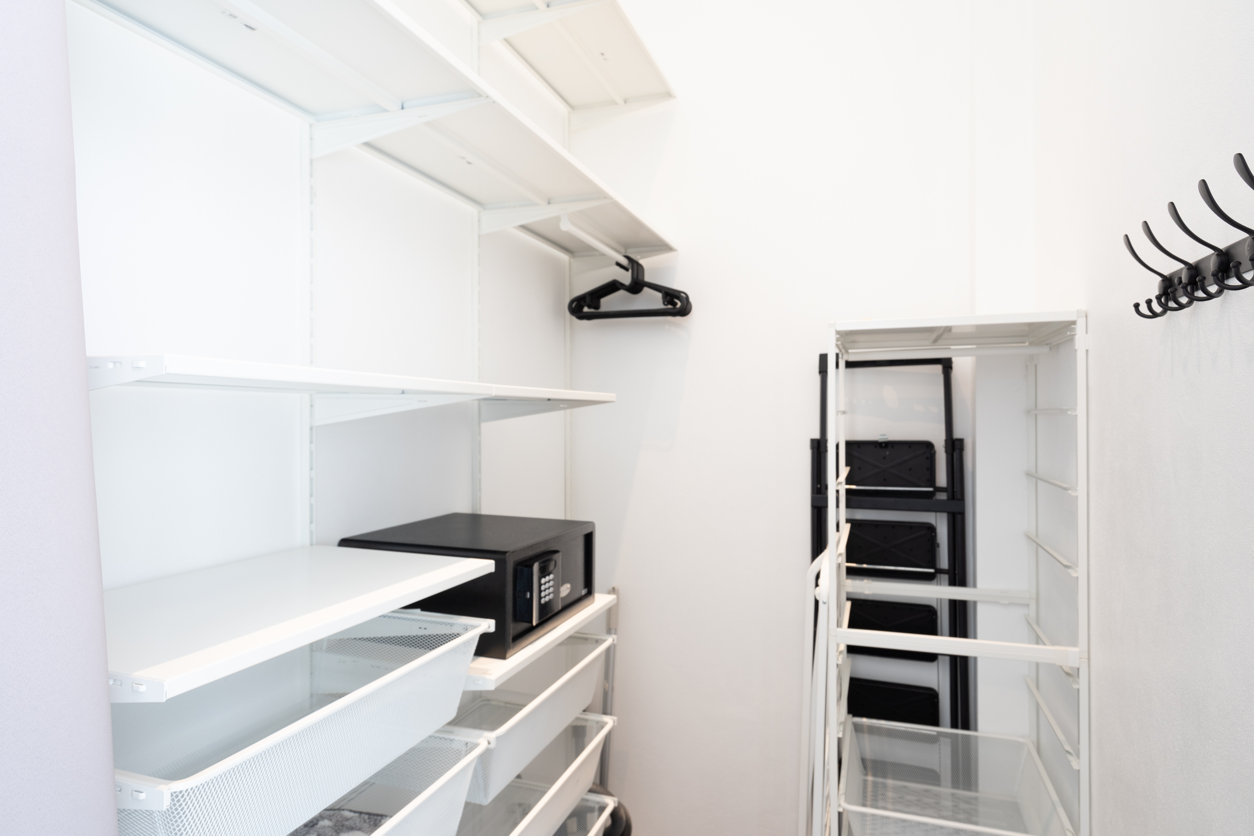 The apartment features one spacious bathroom with a shower and a second, smaller toilet room for added convenience. A large storage closet provides ample space for your personal items.