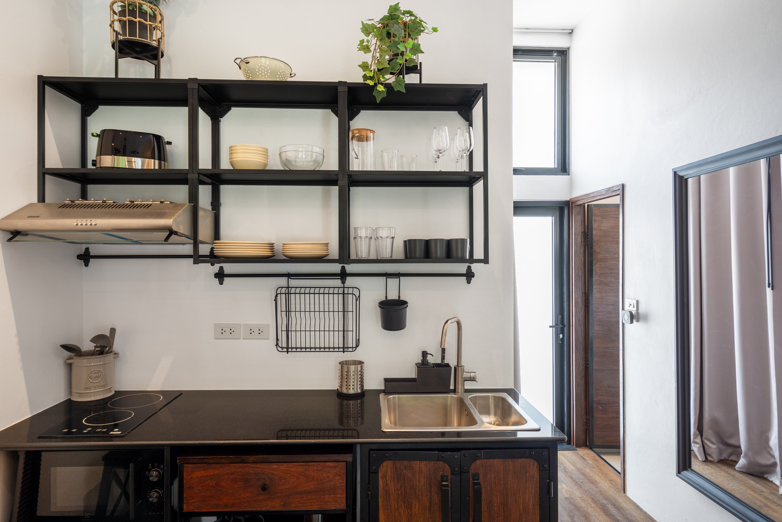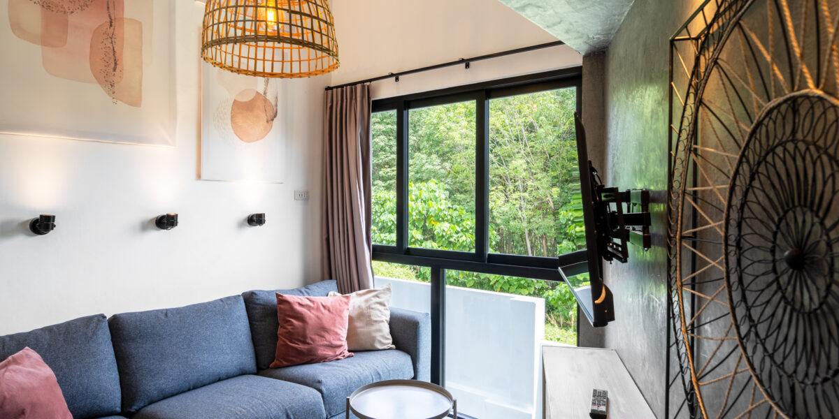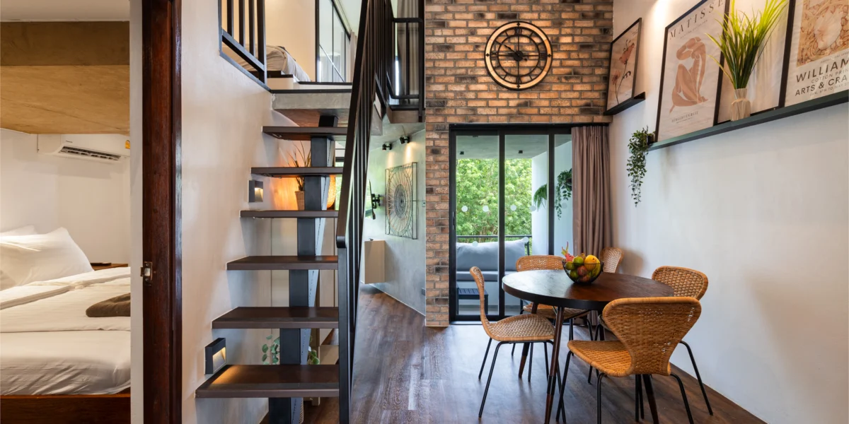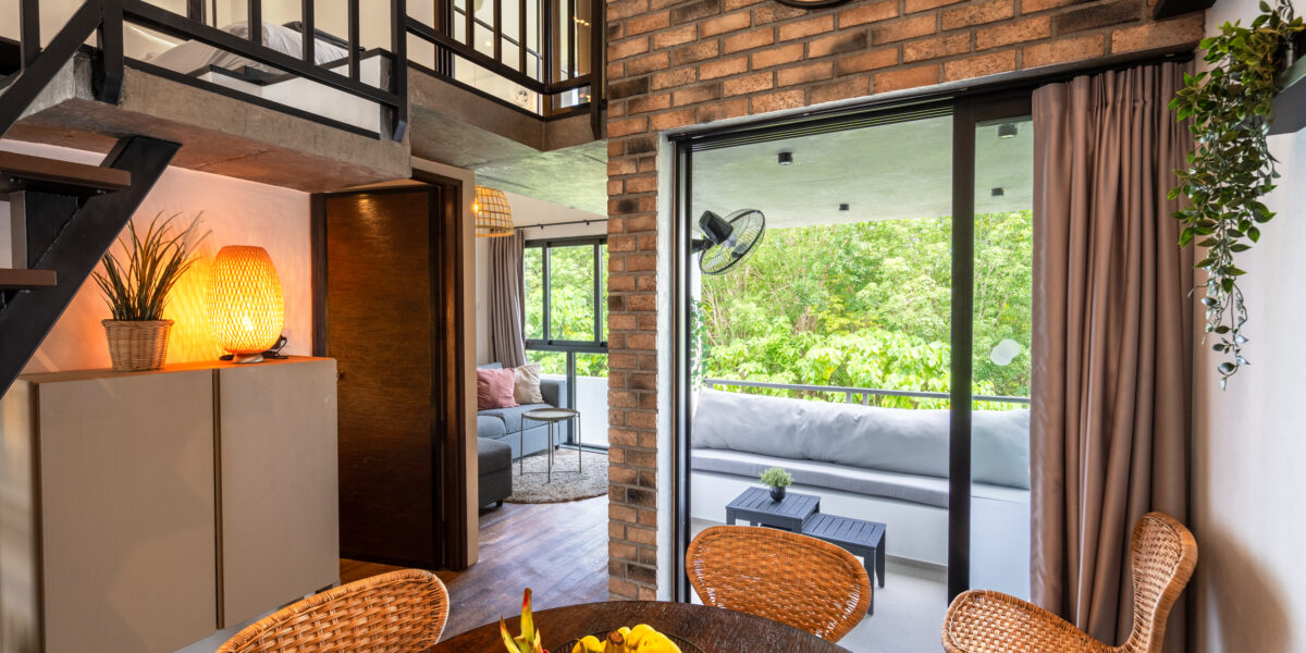 Enjoy a perfect mix of industrial charm, comfort, and tranquil jungle ambiance in this uniquely designed apartment.