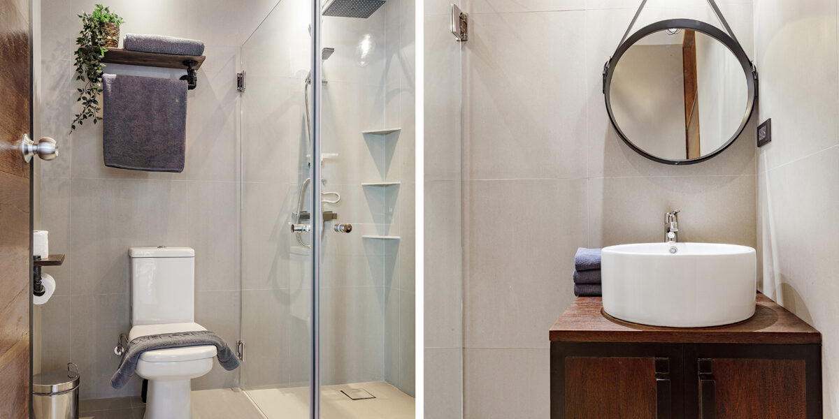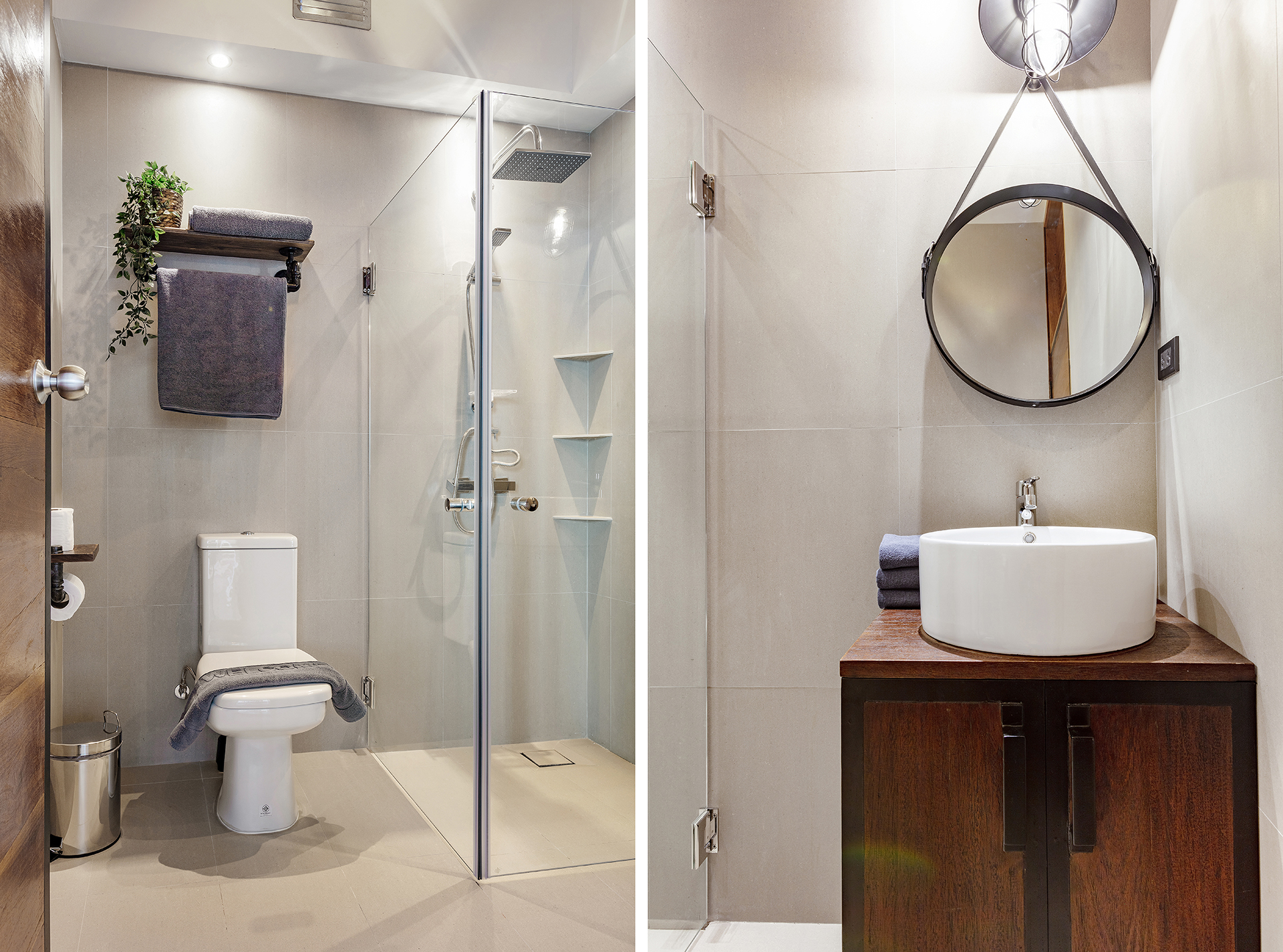 - Both bathrooms are elegantly tiled, providing a modern and clean aesthetic.