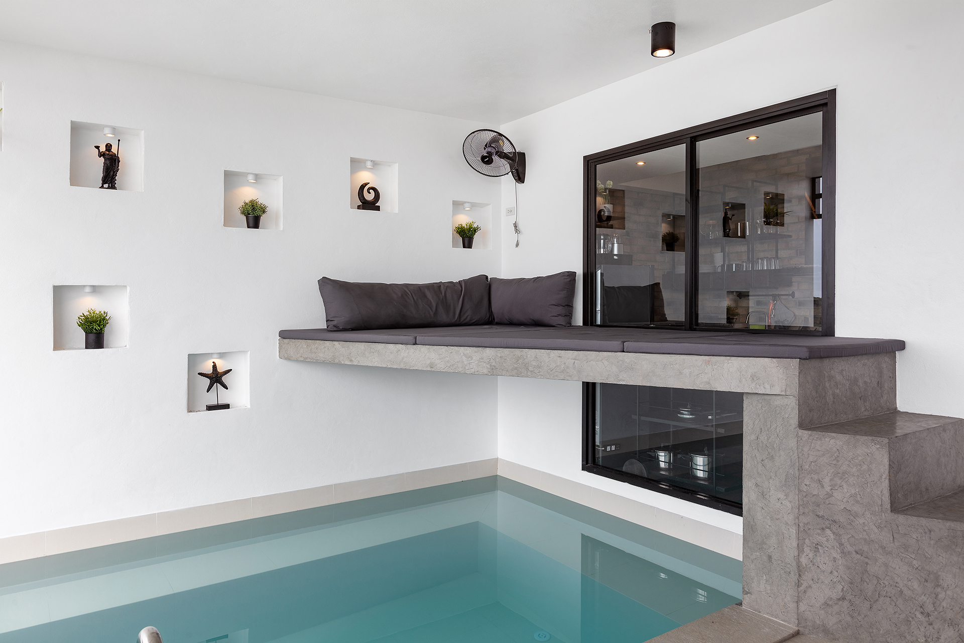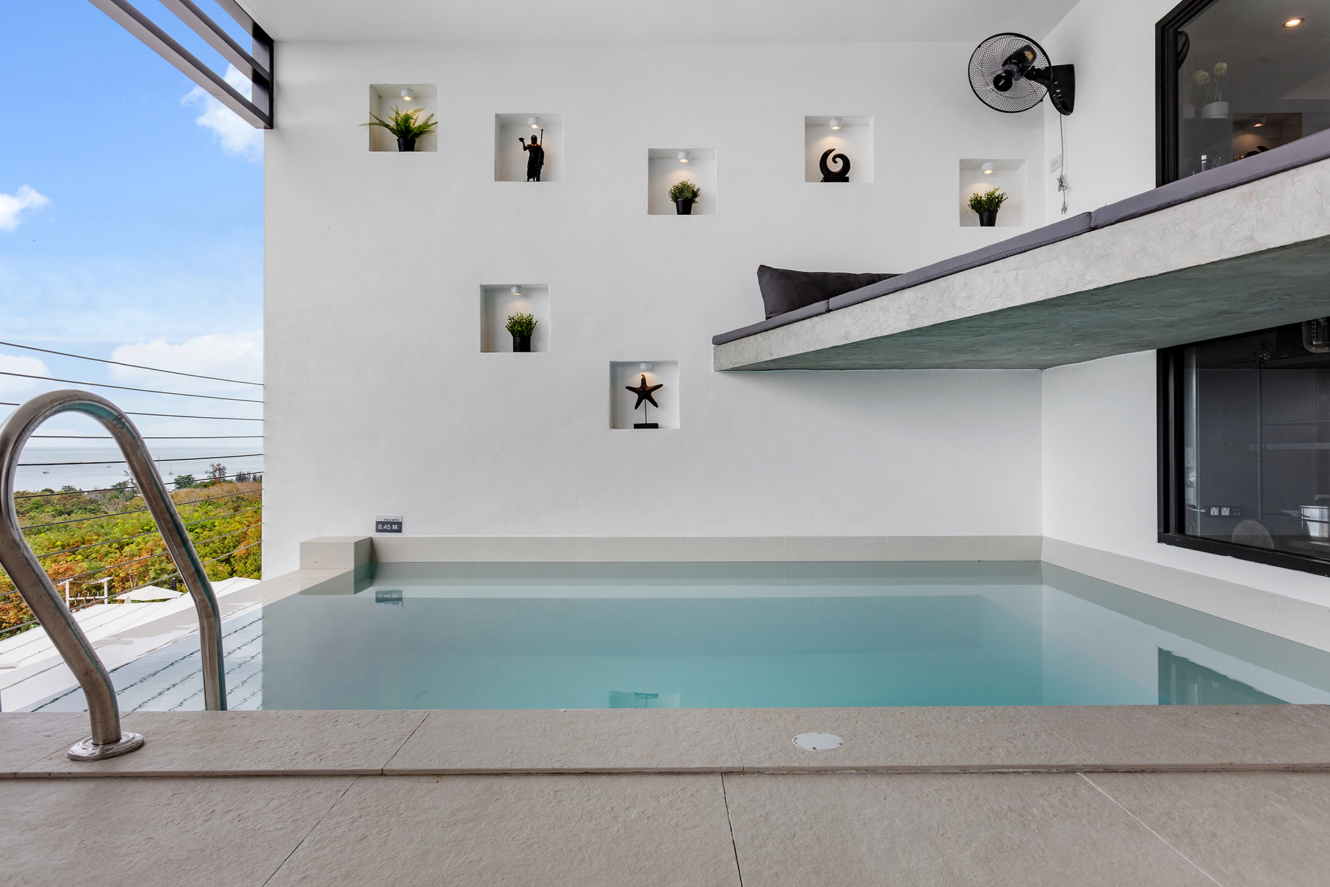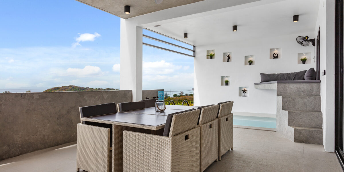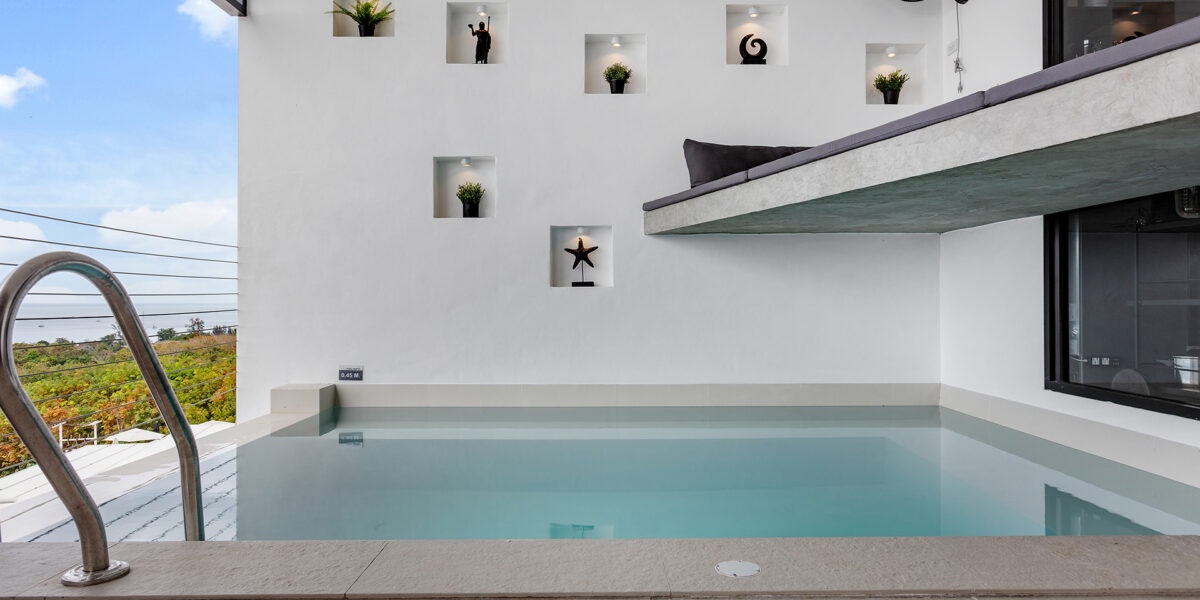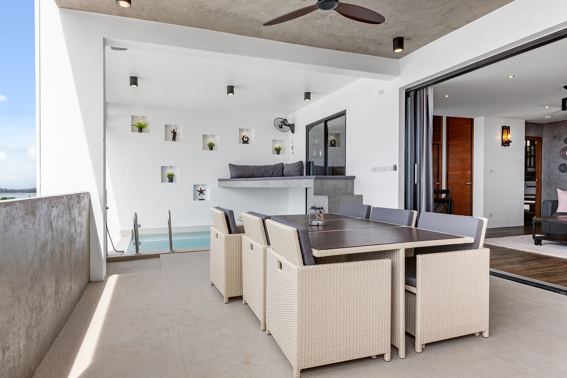 - The balcony, adorned with tiles, features a BBQ area, a private swimming pool, and breathtaking sea views, making it the perfect place to enjoy stunning sunsets.